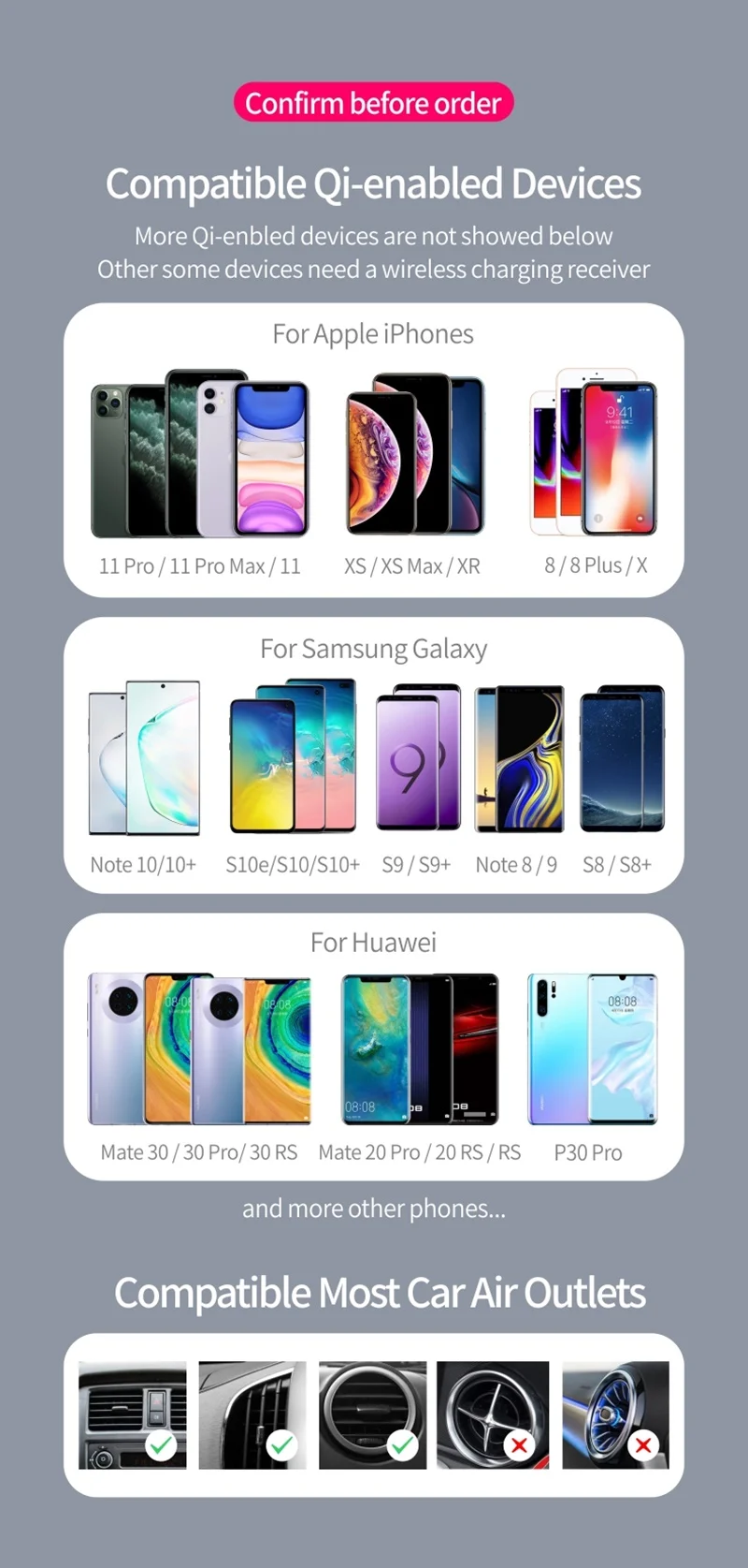 Вам нужно проверить на Google или Baidu, чтобы проверить, поддерживает ли ваш телефон беспроводную зарядку, если да, вы можете использовать это устройство, если нет, вам нужно купить приемник для вашего телефона.