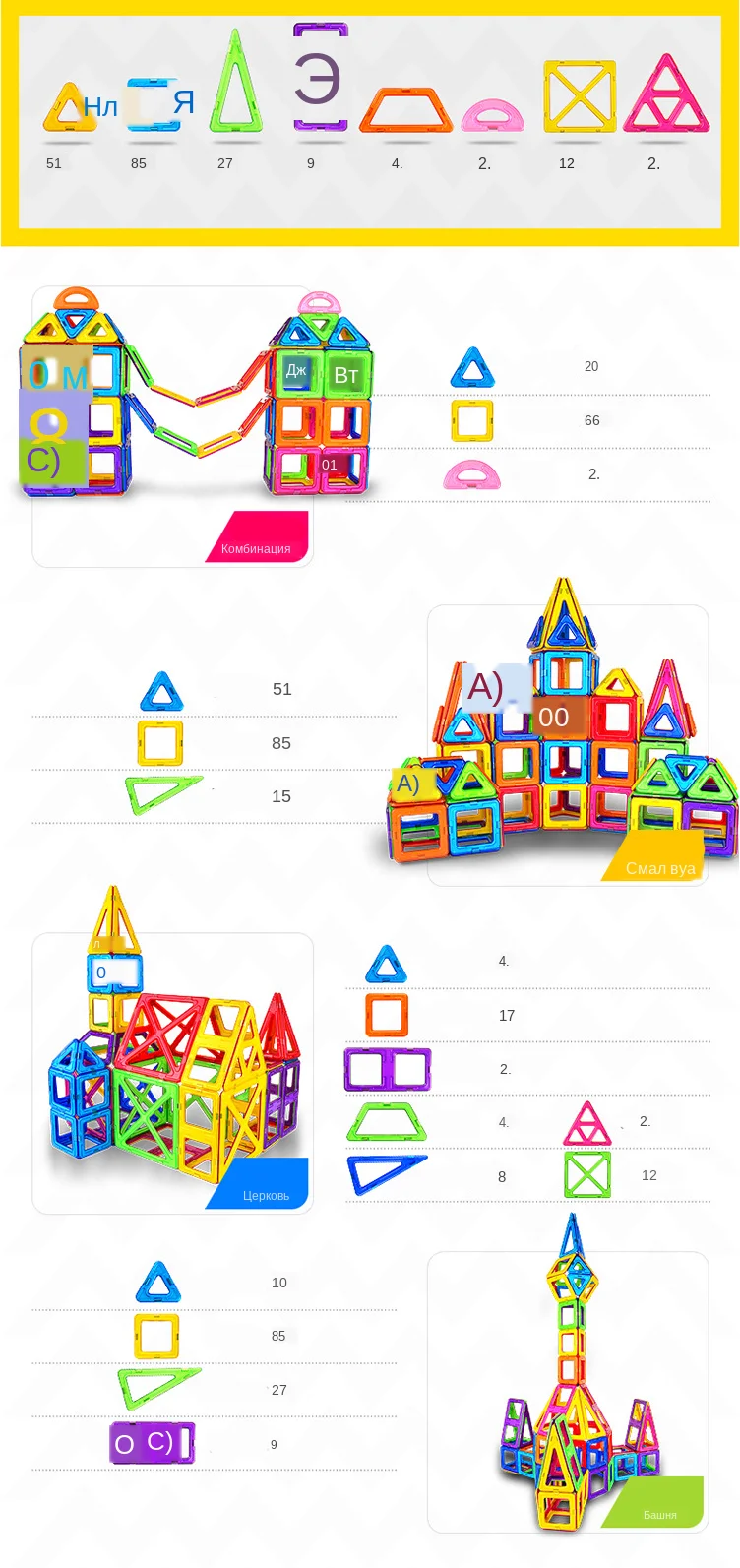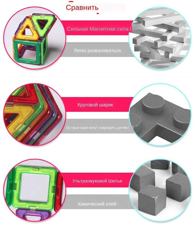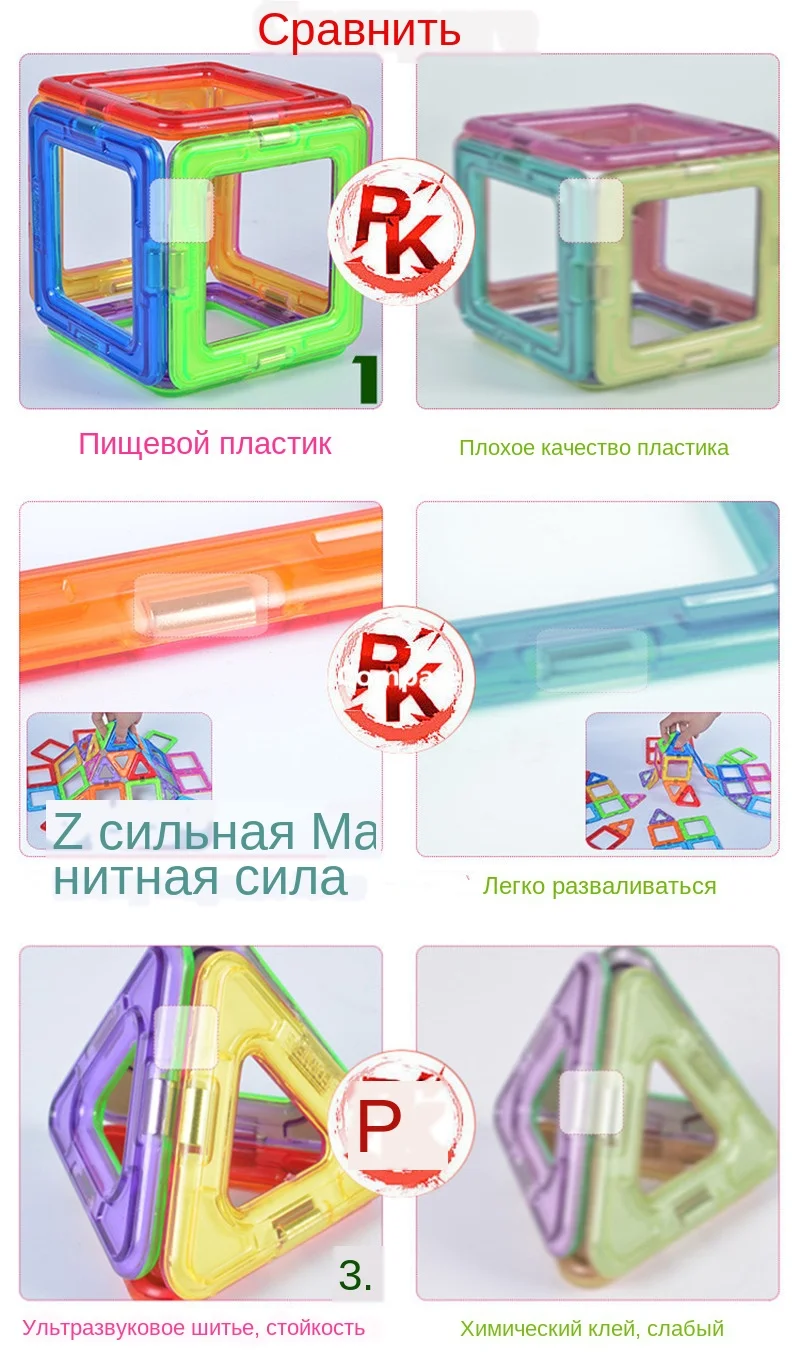 Материал: пластик + магнит Размер: большой размер (безопаснее для детей) Посылка: полиэтиленовый пакет Цвет: будет отправлен в случайном порядке 1. Эти магнитные блоки могут вращаться на 360 градусов, могут быть взаимно встроенными блоками. Популярные в Европа и США, очень подходит для всей семьи, а также в удовольствие от lego group. 2. Магнитная сборка выбирает импортный 100% нетоксичный зеленый пластик, хорошая эластичность. Моделирование протеана может быть объединено из строительных блоков (корпус, транспорт, люди, животные, парк развлечений и т. Д.). 3. Содержит подробные инструкции и картинки вместе подробное введение, чтобы играть и может понять.