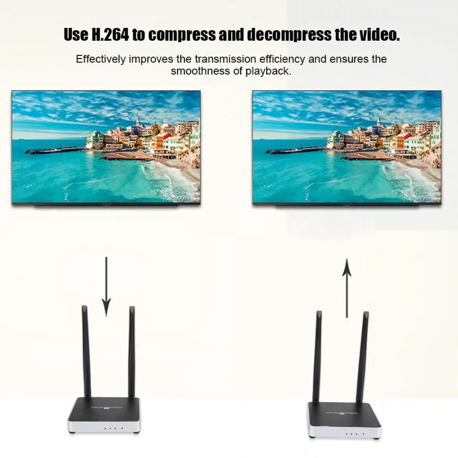 1. HDMI удлинитель передает аудио высокой четкости и видеосигналы по беспроводной WI-FI сигналов до 200 метров.