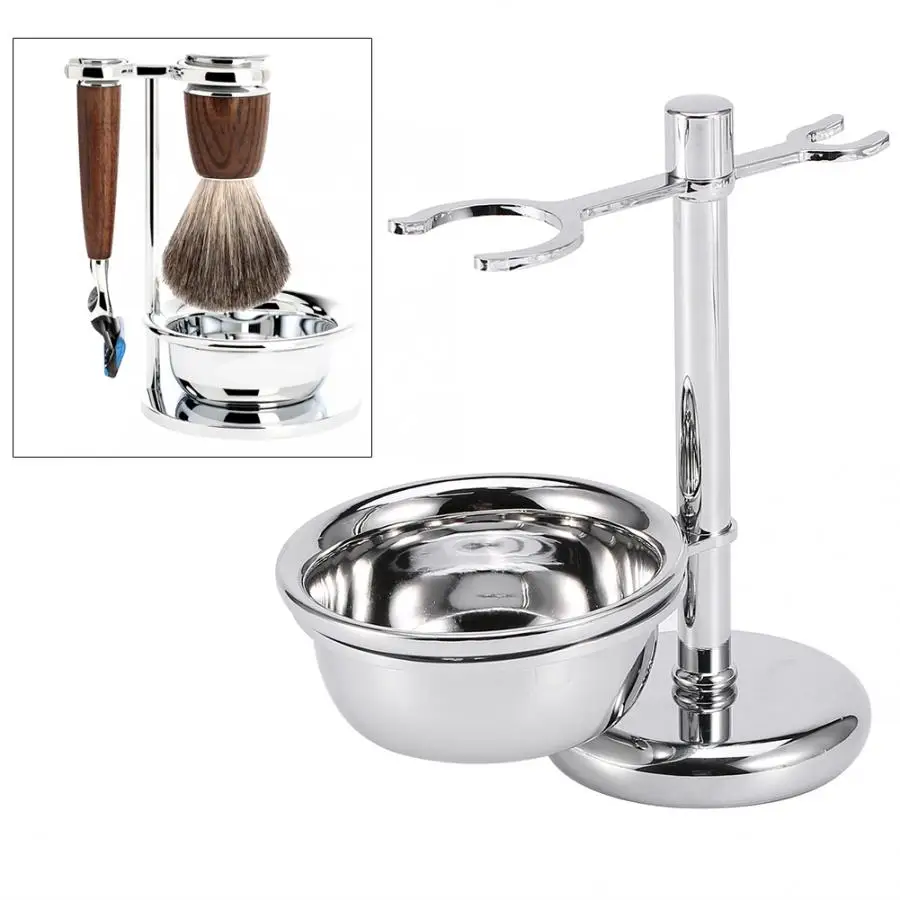 2 в 1 портативный держатель для бритья, подставка для кистей для бритья из нержавеющей стали и чаша для мыла для бритья, мужской набор инструментов для бритья