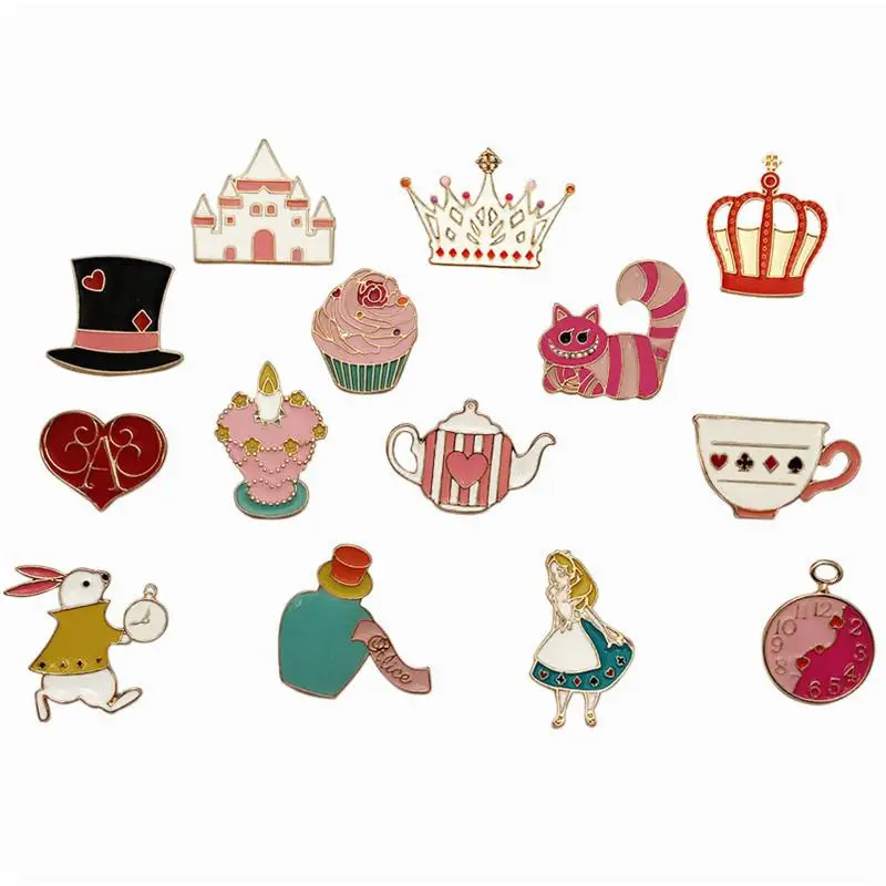 Узор: замок, белая корона, Шляпа Волшебника, котенок, мороженое в форме цветка, подсвечник, чайник, сердца, чашки, Красная корона, волшебное зелье, карманные часы, кролик, Алиса;