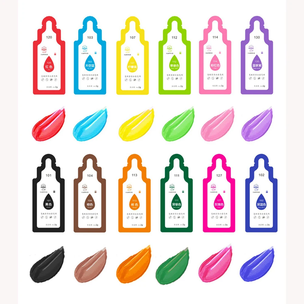 Количество: 12 шт. Цвет: черный, синий, небесно-голубой, коричневый, желтый, темно-зеленый, светильник-зеленый, оранжевый, розовый, красный, розовый, фиолетовый Срок годности: два года Дата производства: Смотрите внизу Посылка: 12 * пигмент для пищевых продуктов Пищевой красящий пигмент, безопасный и здоровый в использовании, нельзя есть напрямую. Широкое применение, яркий цвет, хранить в сухом и прохладном месте, можно хранить в холодильнике. Яркие Цвета помогут сделать вашу выпечку более интересной и веселой. Может использоваться для выпечки, окраски тортов и производства пластилина Диапазон использования и дозировка: пожалуйста, используйте его в соответствии с требованиями. Его нельзя есть напрямую. Рекомендуемая дозировка 1,0 г/кг. Способ использования: Добавьте необходимое количество и Смешайте. Условия хранения: хранить в сухом и прохладном месте, можно хранить в холодильнике. Примечание: если он не используется сразу, рекомендуется запечатать его и использовать его как можно скорее.
