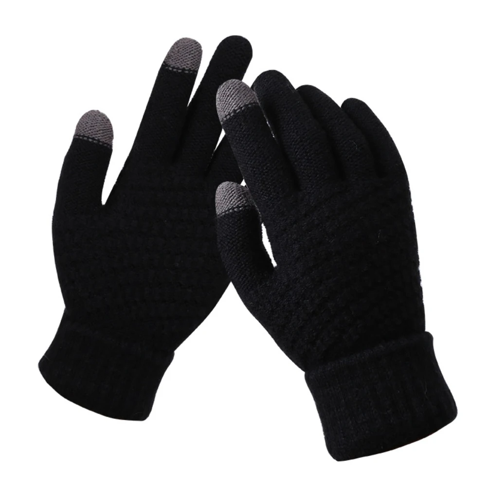 Стильные женские зимние мягкие теплые трикотажные тянущиеся перчатки с сенсорным экраном