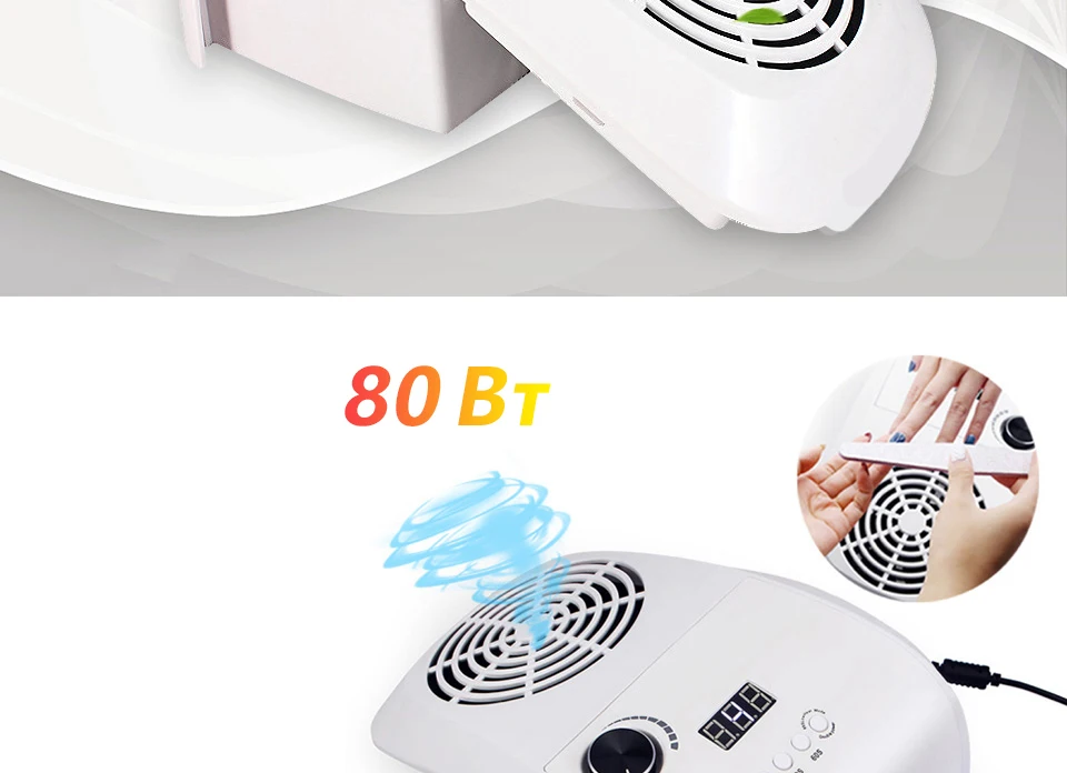 2 в 1 УФ светодиодная лампа для сушки ногтей с пылесос для ногтей, лак для ногтей, лак для ногтей гель-80 Вт ногтей пылесборник маникюрный Инструмент для маникюра