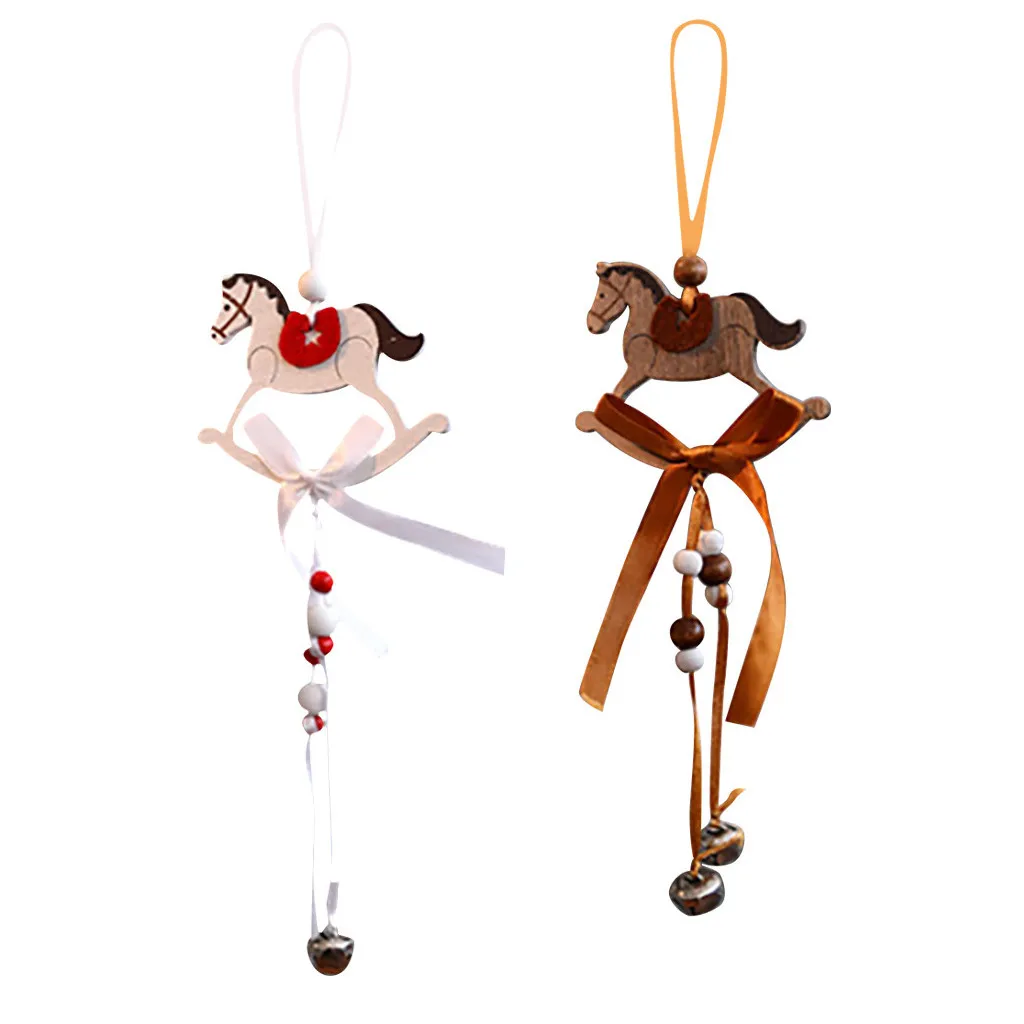2 шт Рождественский мультяшный конь колокольчик Деревянные украшения для рождественской елки Колокольчик для животных подвесной Декор 2019 Спецификация: Стиль: рождественские украшения