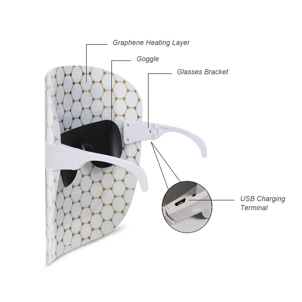 Про Графен: Графеновый Материал больше подходит для человеческого тела: когда Графен нагревается, он выпускает 6-14 микрон дальнего инфракрасного спектра жизни на той же частоте, что и человеческое тело, которые могут непосредственно достигать глубоких тканей кожи, срабатывать межмолекулярный резонанс, ускоряет кровообращение, способствует регенерации клеток и, таким образом, улучшает проблемы с кожей. Высокотехнологичные и высокоэффективные: маски для лица могут заменить различные средства по уходу за кожей, просто используйте маску при нанесении масок, и вы можете завершить глубоко сидящую красоту за короткое время, чтобы вам было легче придерживаться своего напряженного графика. Вспомогательное поглощение эссенции: когда маска Горячая, она может открыть канал пор и сотрудничать с функциональными продуктами по уходу за кожей, чтобы сделать кожу быстро впитывать и двойной эффект. Четыре регулируемых температуры и времени: для удовлетворения потребностей красоты различных кож, наши маски доступны в четырех регулируемых шестеренках, так что вы можете выбрать режим, который подходит вам лучше в зависимости от вашего состояния кожи. Особенности: Отбеливания в чистоте. -Пятна акне. -Пополнение кожи. -Водный и масляный баланс. -Светильник против морщин. Примечание: Пожалуйста, очистите лицо перед использованием и нанесите его после нанесения маски. -Начальная настройка температуры использования должна начинаться с 45 °C. -Время каждого использования не должно превышать 20 минут. -Этот продукт можно использовать каждый день. Рекомендуется использовать 3 раза в неделю. -Этот продукт не является водонепроницаемым и не следует стирать непосредственно. -Не нажимайте снова, чтобы избежать повреждения деформации. -Беременным женщинам не рекомендуется использовать. -Не используйте лечения щитовидной железой или тех, кто использует лекарство от щитовидной железа. -Не используйте пациентов с глазными недугами и теплом лица.