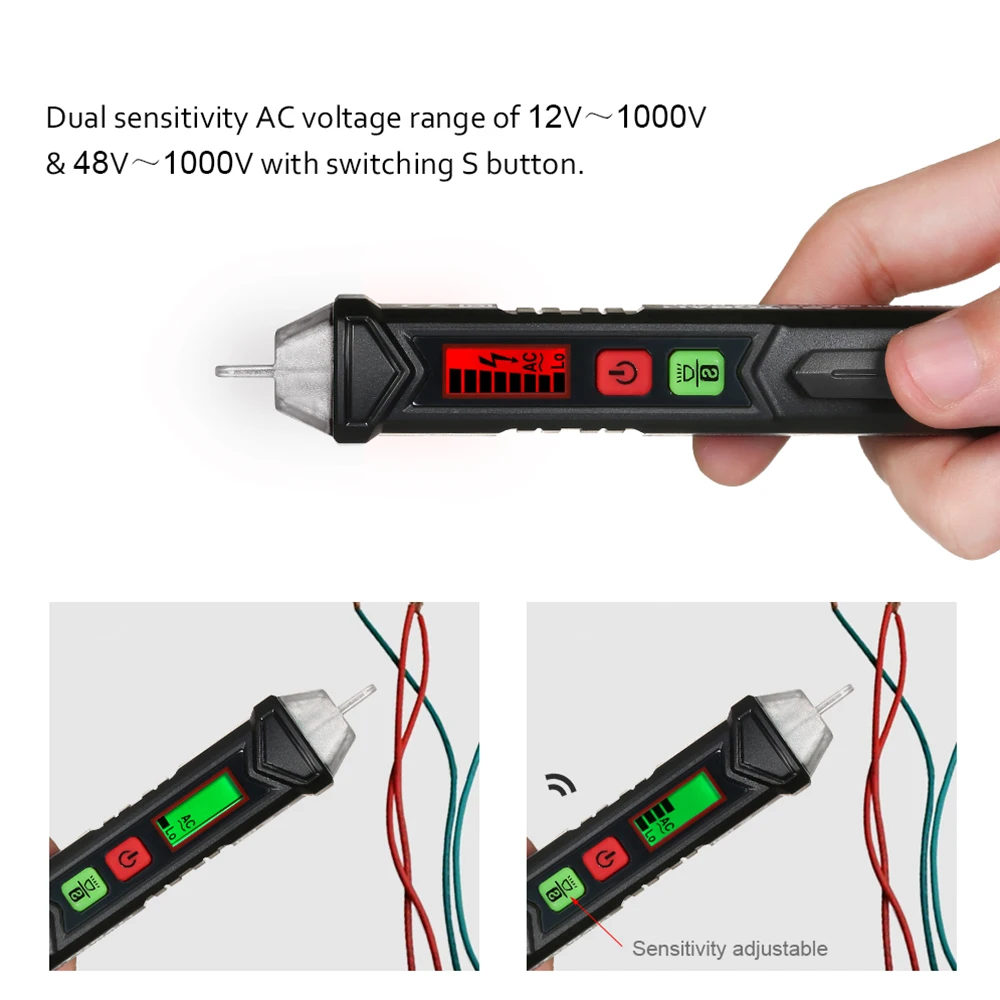Двойной диапазон чувствительности напряжения переменного тока 12 V ~ 1000 V & 48 V ~ 1000 V с кнопкой переключения S.