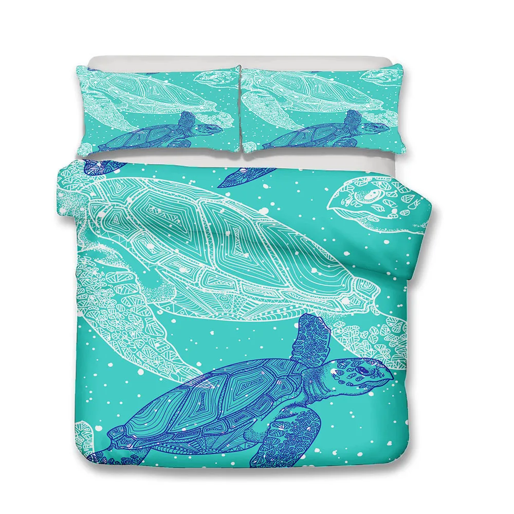 Комплект постельного белья с сине-белыми черепашками, морские животные, для подростков, Декор, пододеяльник, мягкий чехол для кровати, зимний Домашний Комплект постельного белья из микрофибры, наволочка