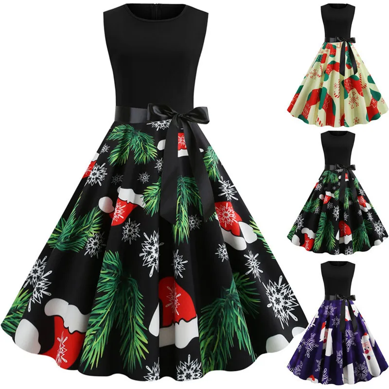 Винтажная строчка с рождественским принтом плюс Европейский королевский стиль дает вам ретро и элегантный вид; fit & расклешенный силуэт подчеркивает Вашу фигуру