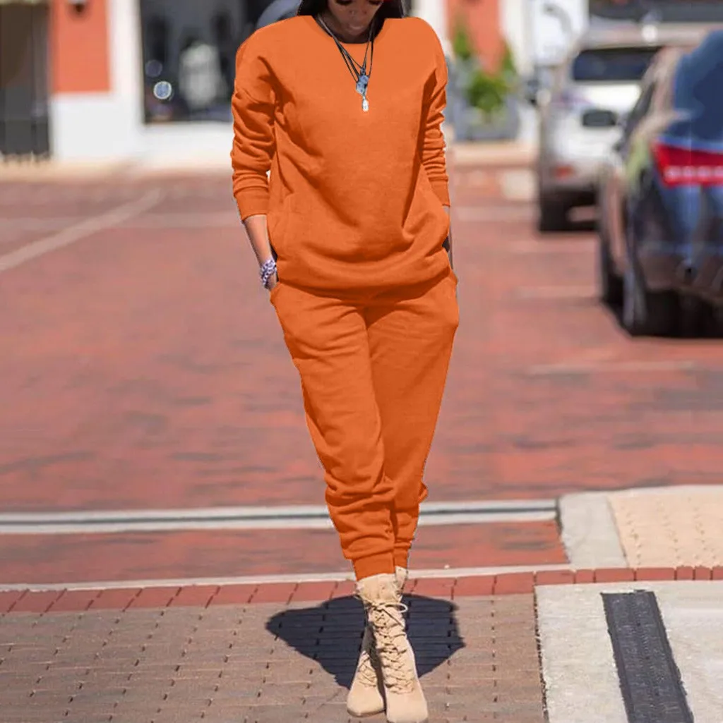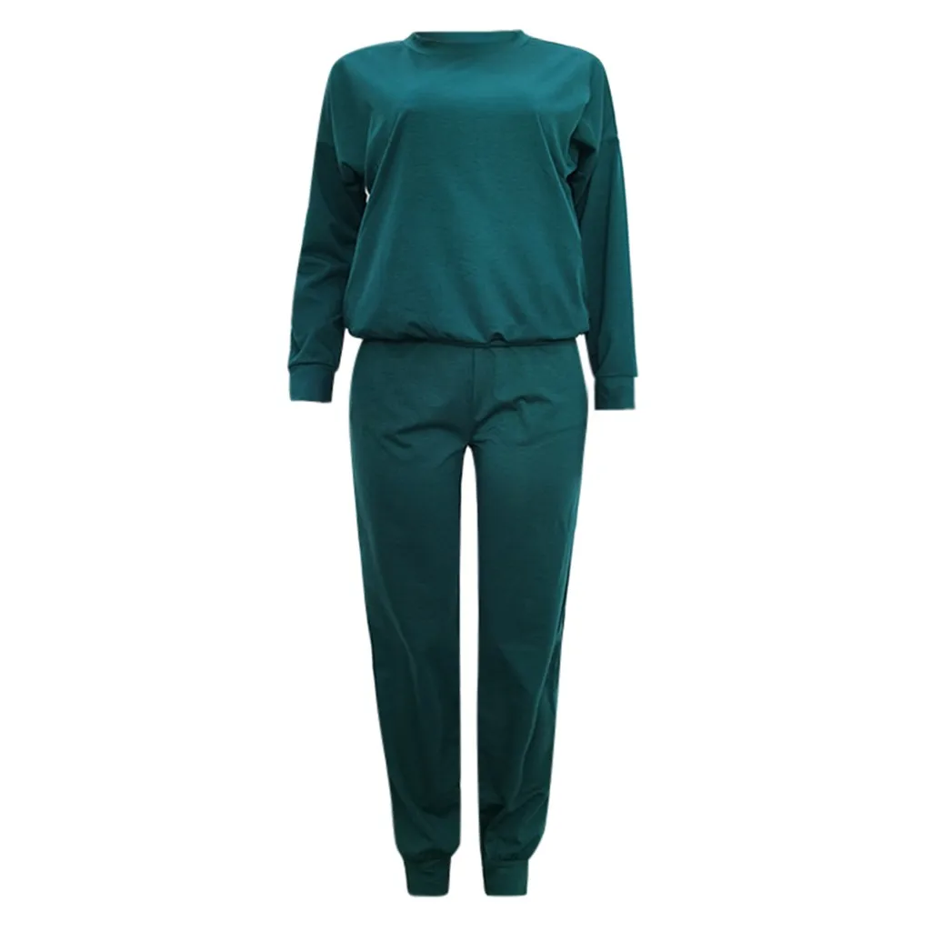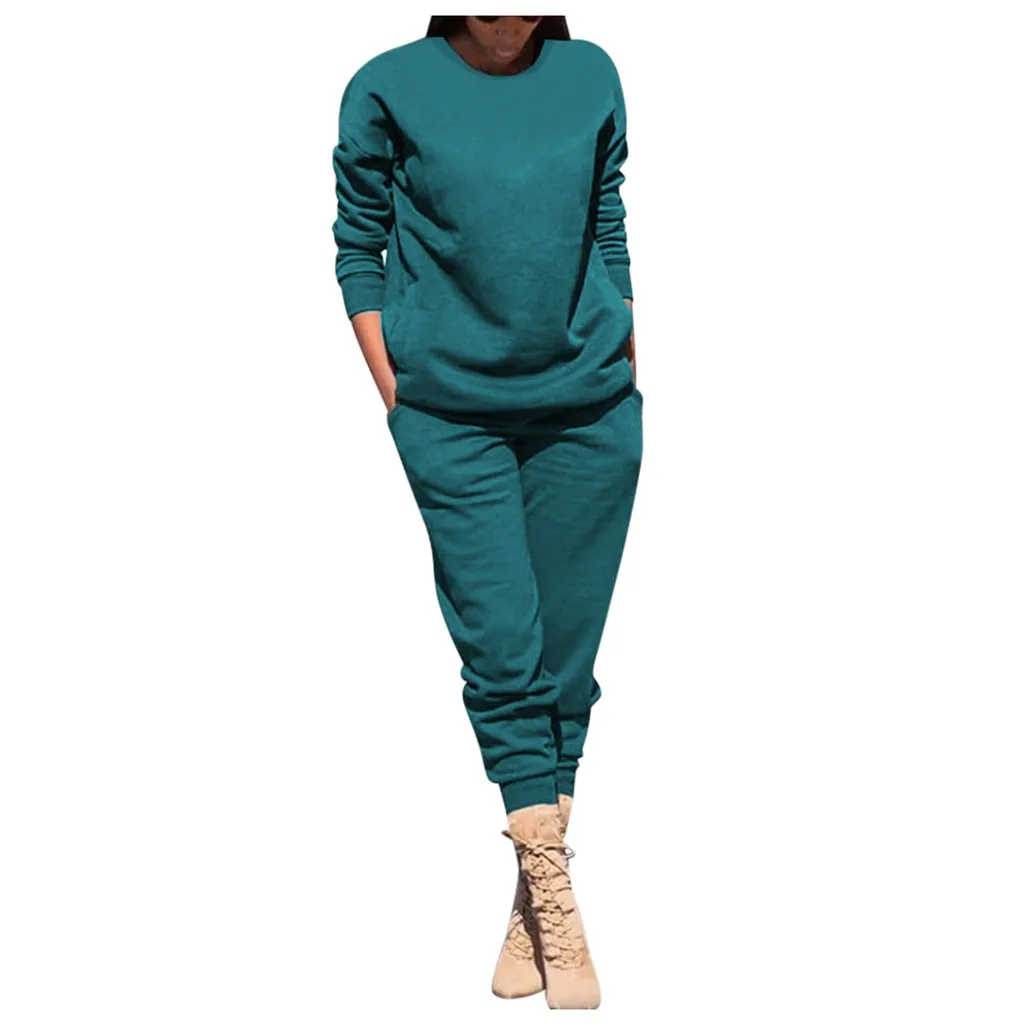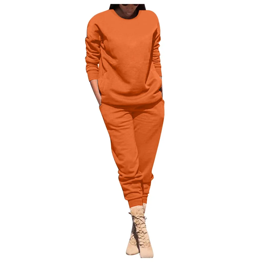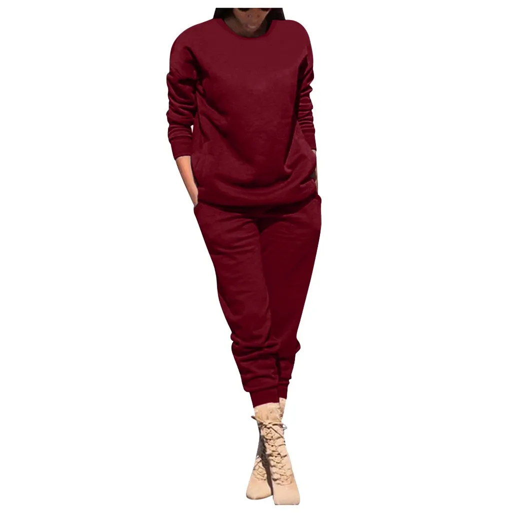 Женский однотонный цвет; сезон осень-зима Повседневный стрейчевый спортивный костюм; топ и брюки.