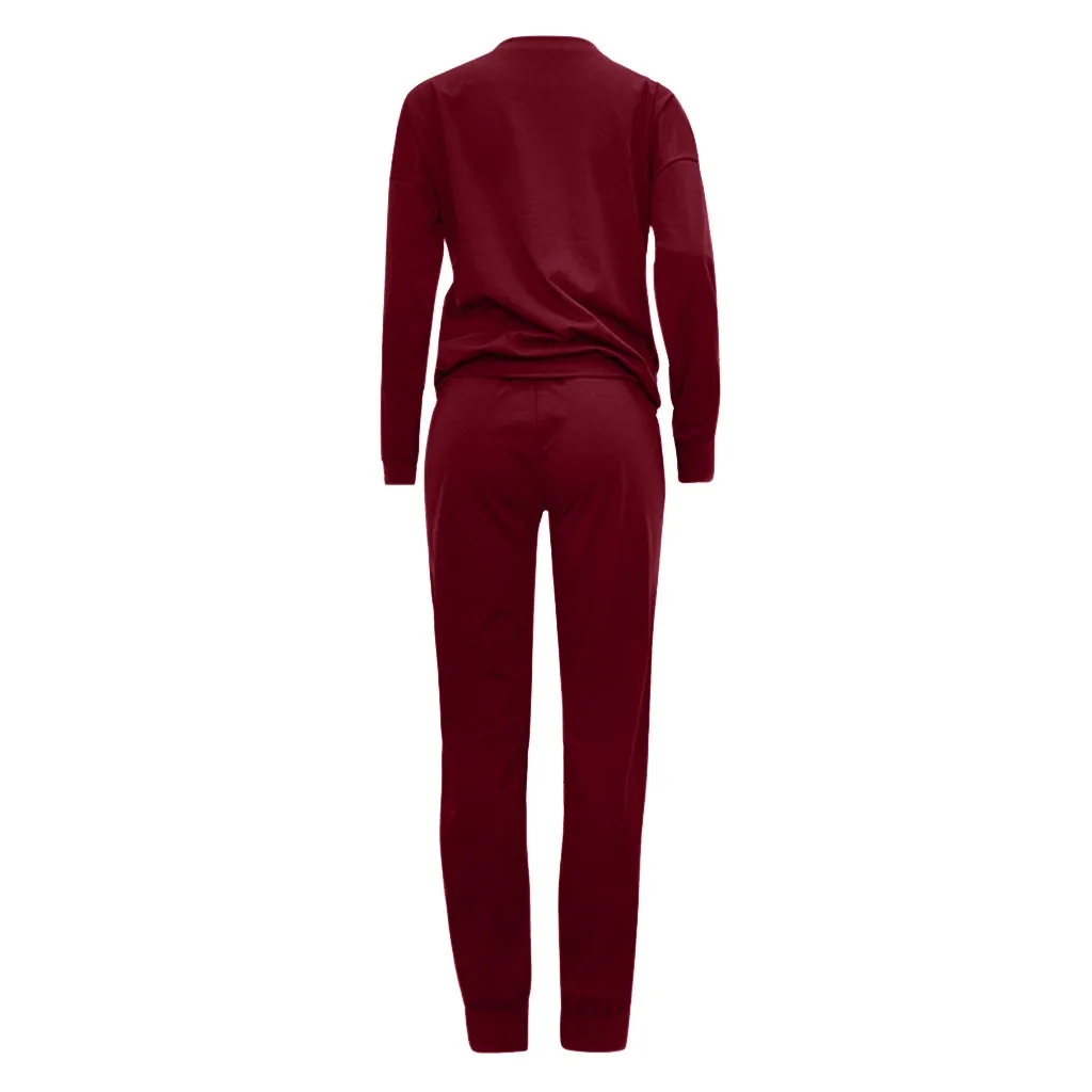 Женский однотонный цвет; сезон осень-зима Повседневный стрейчевый спортивный костюм; топ и брюки