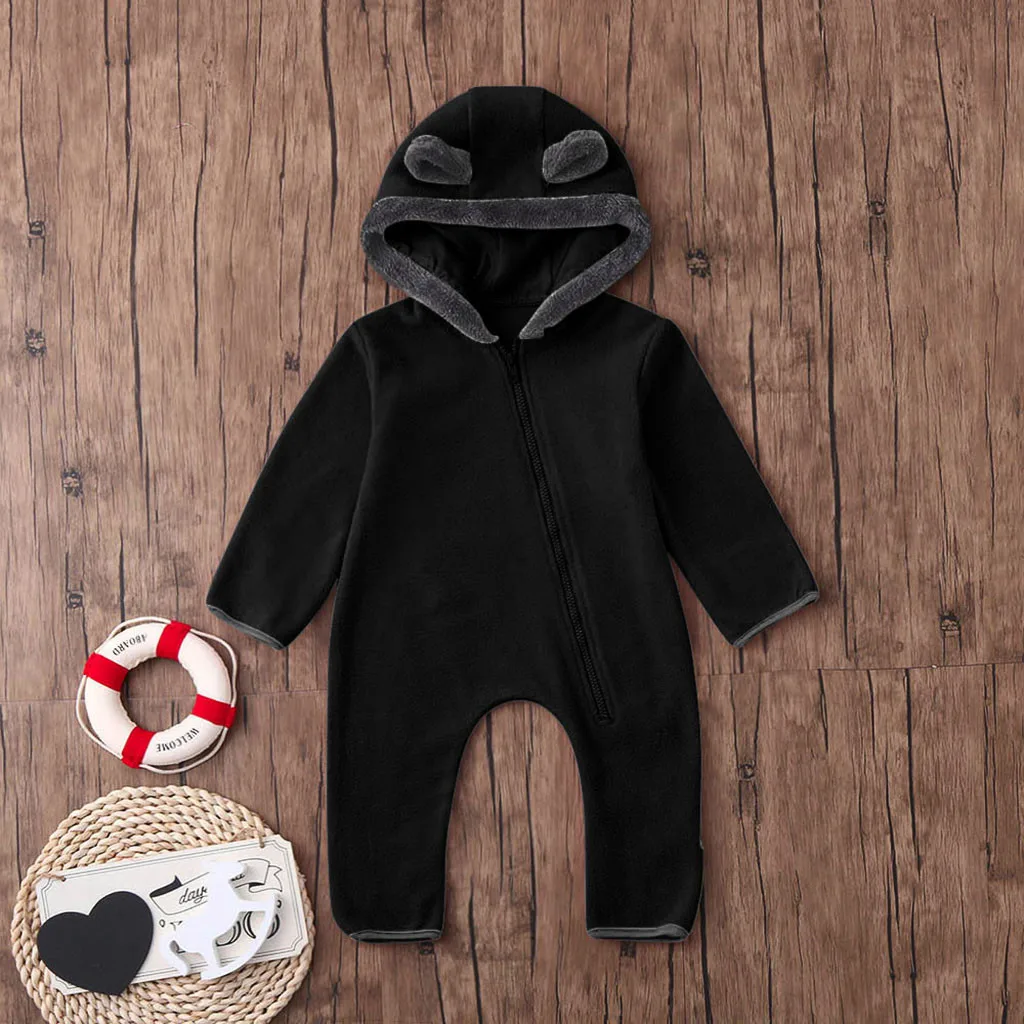 Однотонная толстовка с капюшоном и ушками для маленьких мальчиков и девочек; Флисовый комбинезон