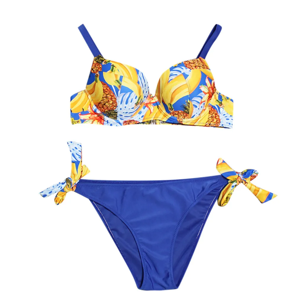 WWomen размера плюс купальный костюм Топ большая чашка с высокой талией Нижняя бикини набор