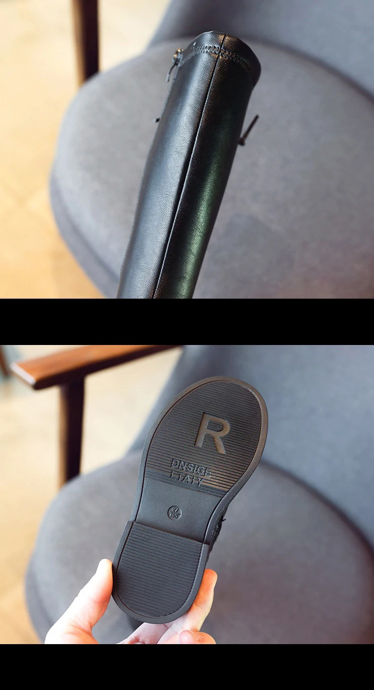 Новинка; Зимние детские сапоги до колена; Обувь из искусственной кожи для маленьких девочек; Детские сапоги принцессы; Модные мотоботы; Черные брендовые сапоги
