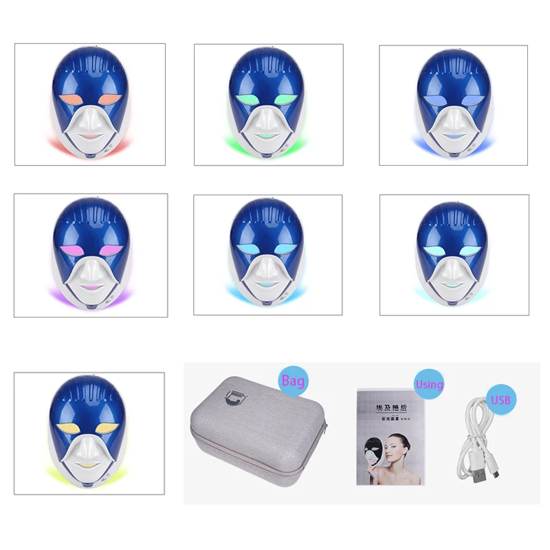 Перезаряжаемая 7 цветов Светодиодная маска для ухода за кожей светодиодная маска для лица с горлышком Египетский стиль Фотон терапия красота лица