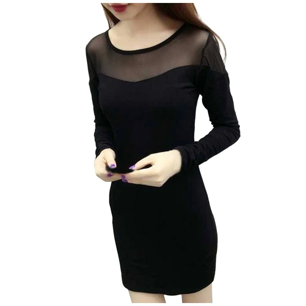 Сексуальное женское мини-платье с сетчатым рукавом и круглым вырезом, облегающее Клубное платье