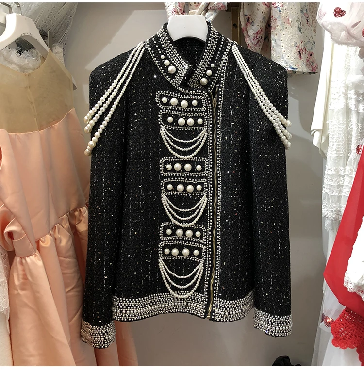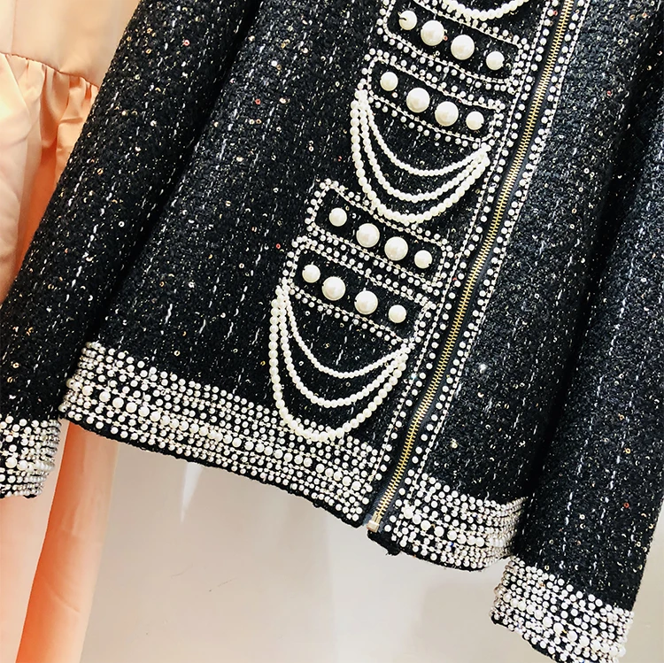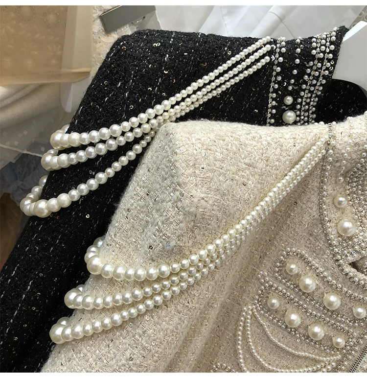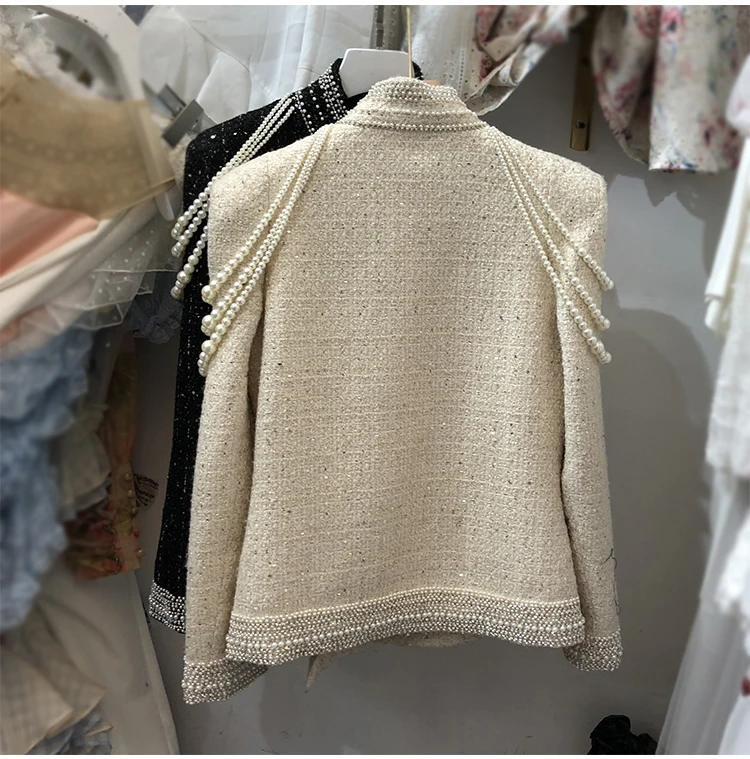 Модные осенне-зимние твидовые куртки женские с длинным рукавом великолепные ткачества жемчуг Элегантные повседневные твидовые пальто Топы 2020