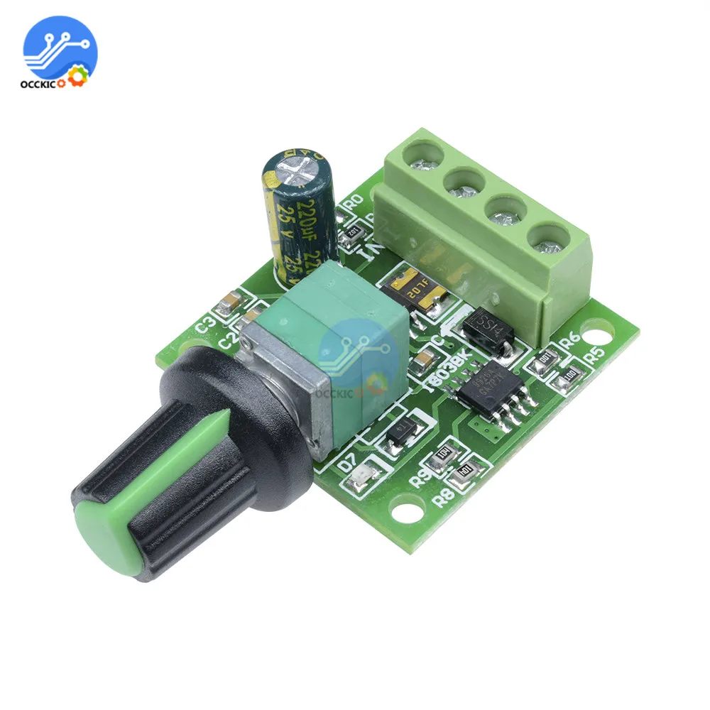 Этот совершенно новый контроллер скорости двигателя постоянного тока 1803BK позволяет контролировать направление двигателя постоянного тока с помощью импульсного модулированного (ШИМ) напряжения постоянного тока с циклом работы полностью Отрегулируйте продукт от 0%-100%.