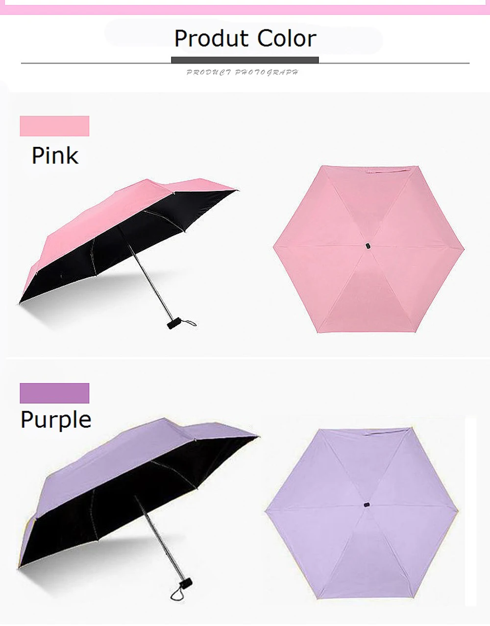 Особенности: Ультра легкий, можно носить с легкостью, куда бы вы ни отправились. Небольшой размер, складной до 16 см, компактный дизайн можно легко хранить в сумке или кармане. Ткань с зонтиком принимает новые экологически чистые ткани, и она удобно помещается в вашем рюкзаке, сумочке или чемодане. Легко носить с собой и идеально подходит для путешествий. Зонтик-очень высококачественный анодный алюминиевый сплав, сверхпрочный светильник Ручка зонта также анодированного алюминиевого сплава, очень высокого качества 5 складной алюминиевый центральный полюс. Вес зонта: 200 г Размер складывания: 16 см Название продукта: 5 складной зонт Ткань зонта: ткань понги + черное покрытие Категория: пять раз зонтик Цвет: розовый, желтый, фиолетовый, зеленый, синий, черный, винно-красный, бежевый, темно-синий Посылка включает: 1 х Зонт