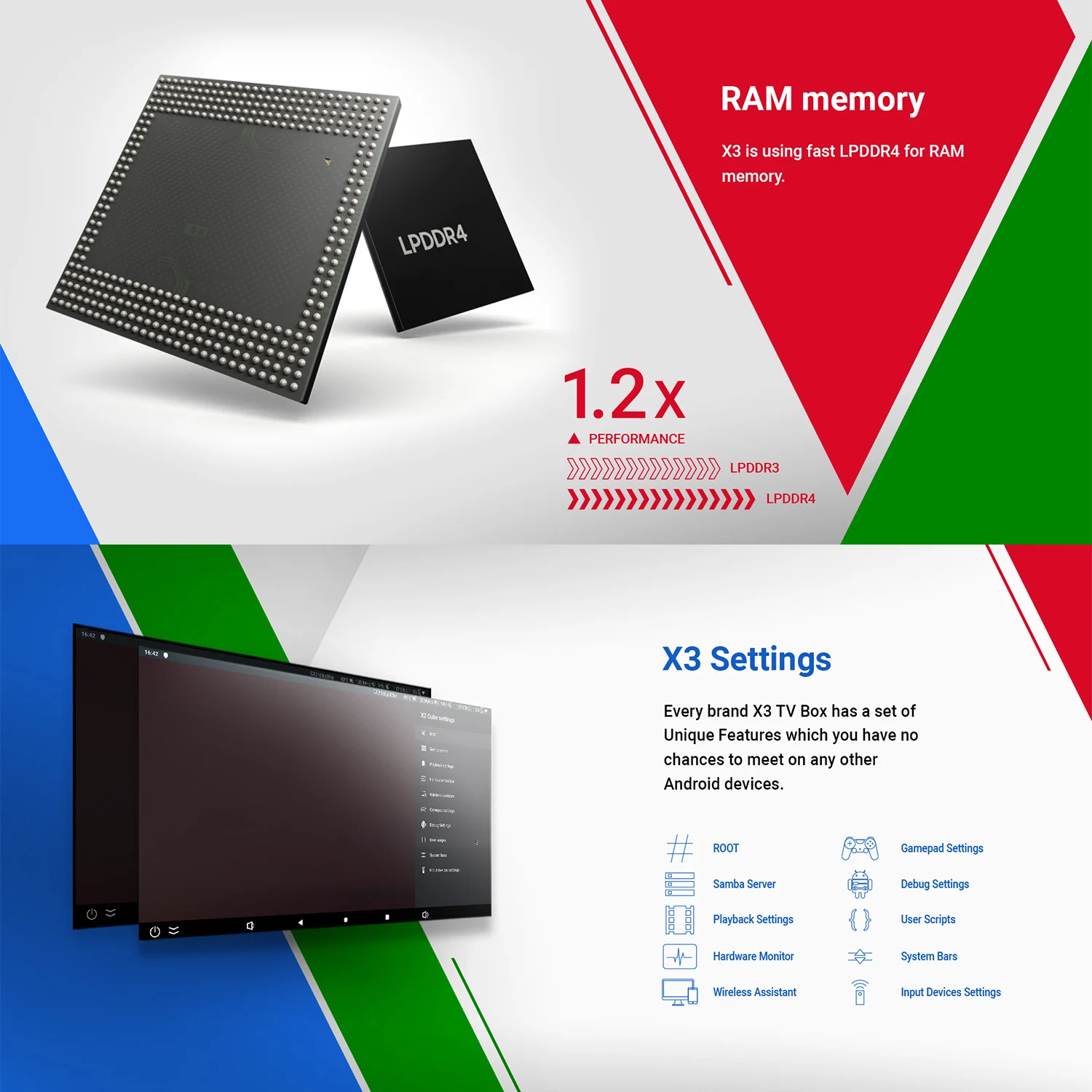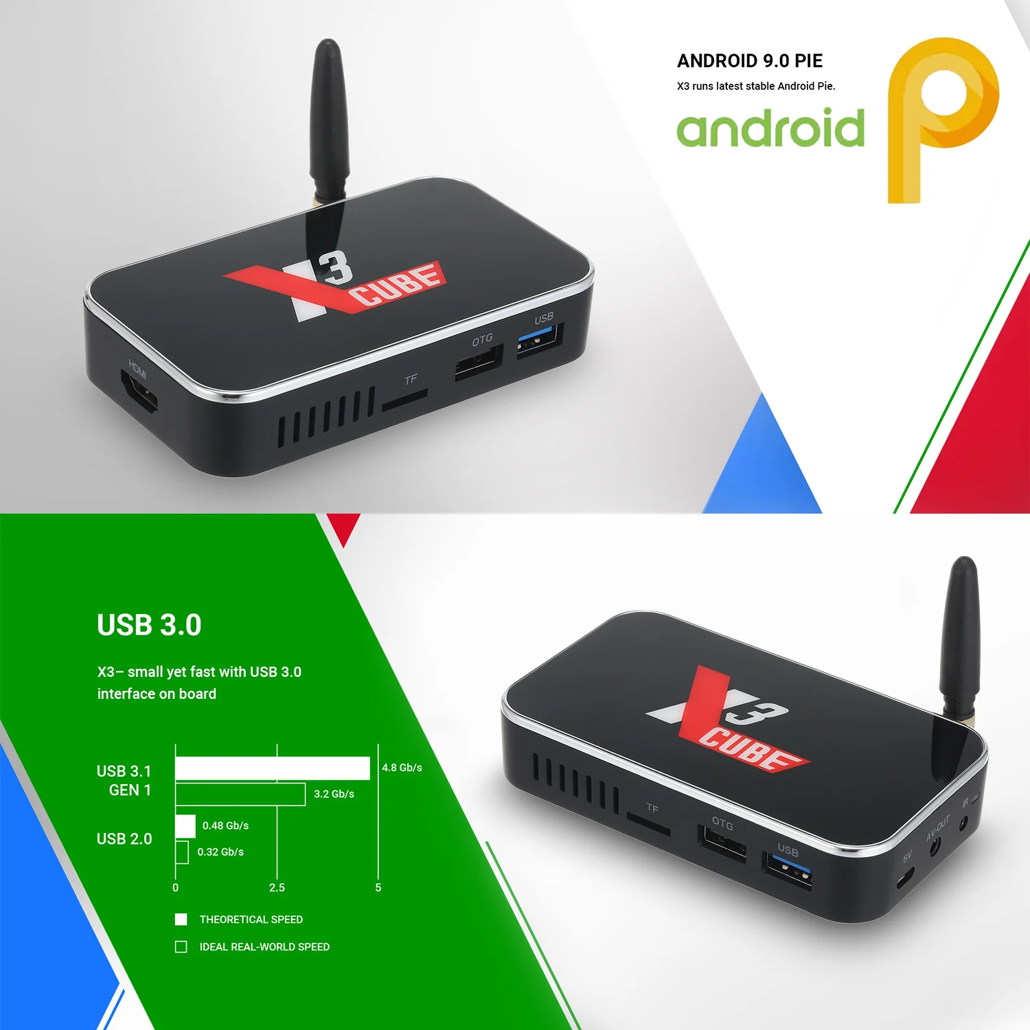 Чипсет: S905X3 64-разрядным четырёхъядерным Чипсет, cortex-A55 Процессор