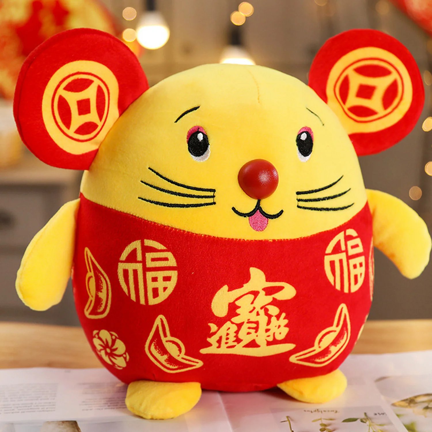 Плюшевая кукла в форме мышки с милым выражением лица, очень милая, но праздничная, добавляет крепкую праздничную атмосферу для китайского Нового года!