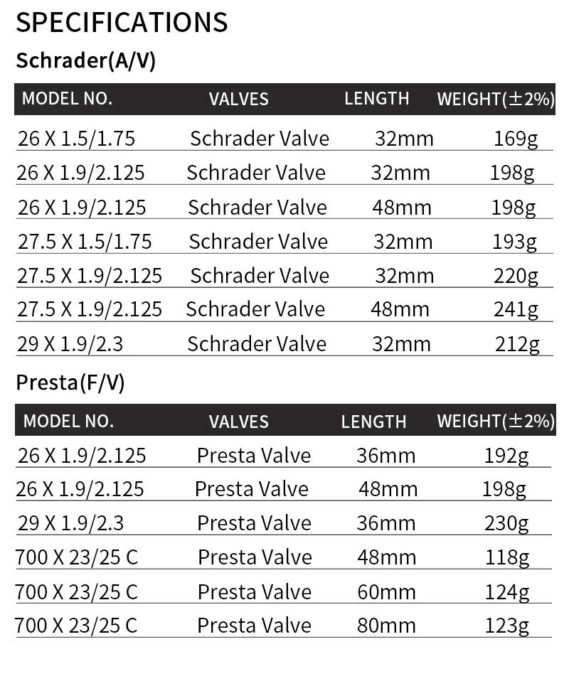 (AV для Schrader / FV для Presta)