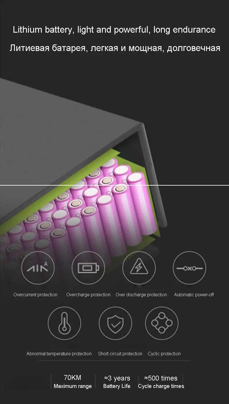 3. Пожалуйста, полностью зарядите аккумулятор перед первым использованием скутера. В дополнение, пожалуйста, заряжайте аккумулятор один раз в три месяца, даже если вы не используете скутер, чтобы поддерживать аккумулятор полностью функциональным и продлить его срок службы. Погружение в воду, столкновения и другие ненормальные факторы могут привести к повреждениям батареи, которые не покрываются гарантией.