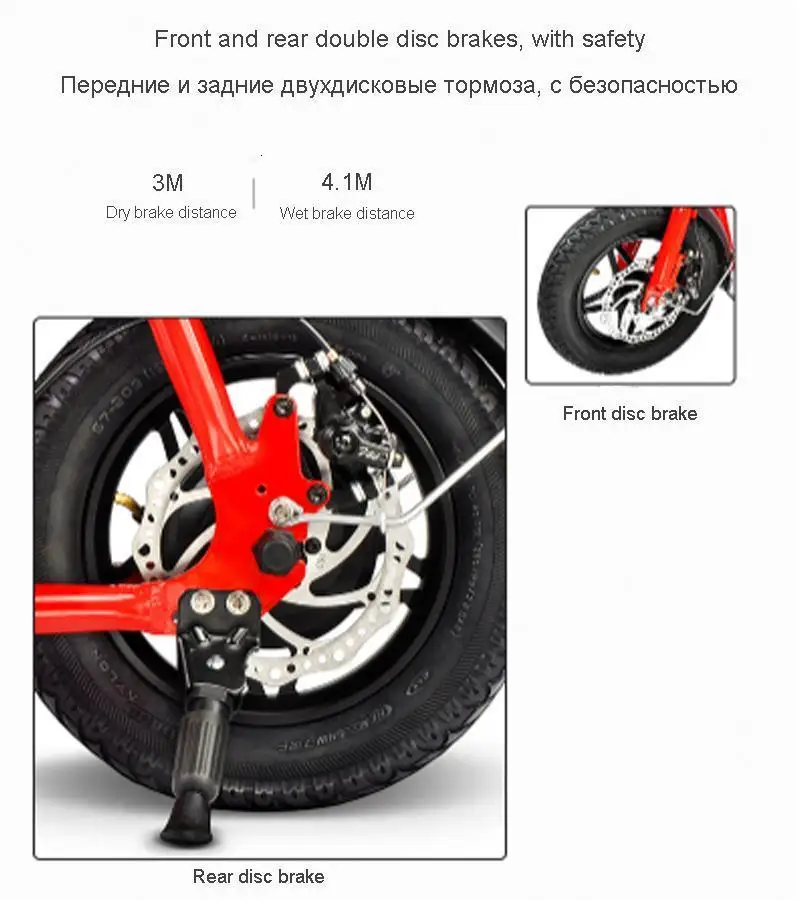 Передние и задние двойные дисковые тормоза, с безопасностью.