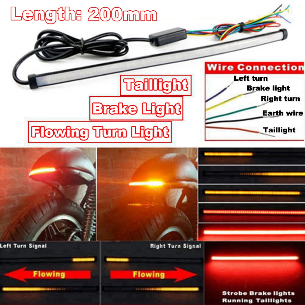 * 20 см задние габаритные огни мотоцикла, тормозные огни и последовательный сигнал поворота светодиодный полоски