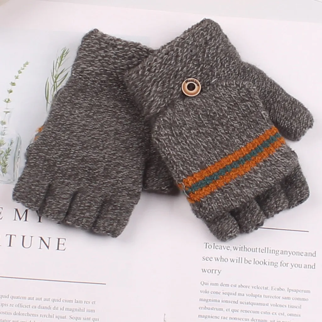 Зимние Детские перчатки больших размеров, вязаные перчатки с полупальцами, перчатки для мальчиков из пряжи AB