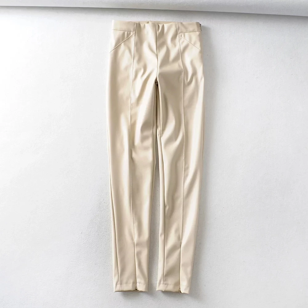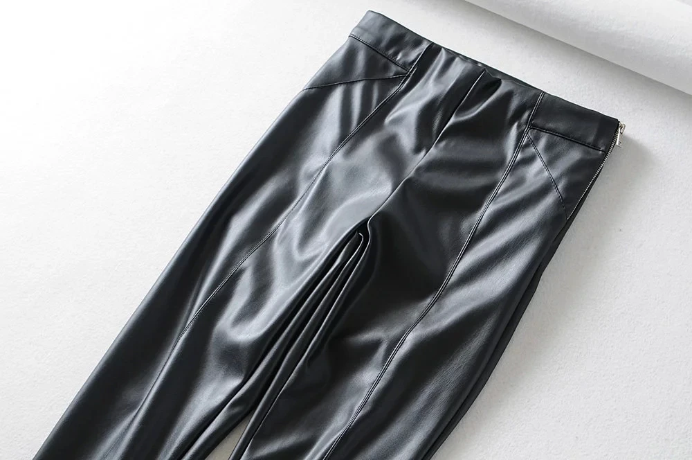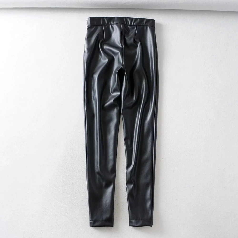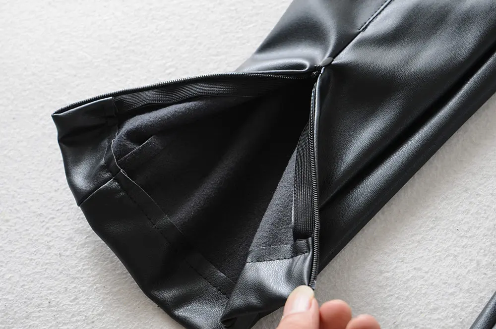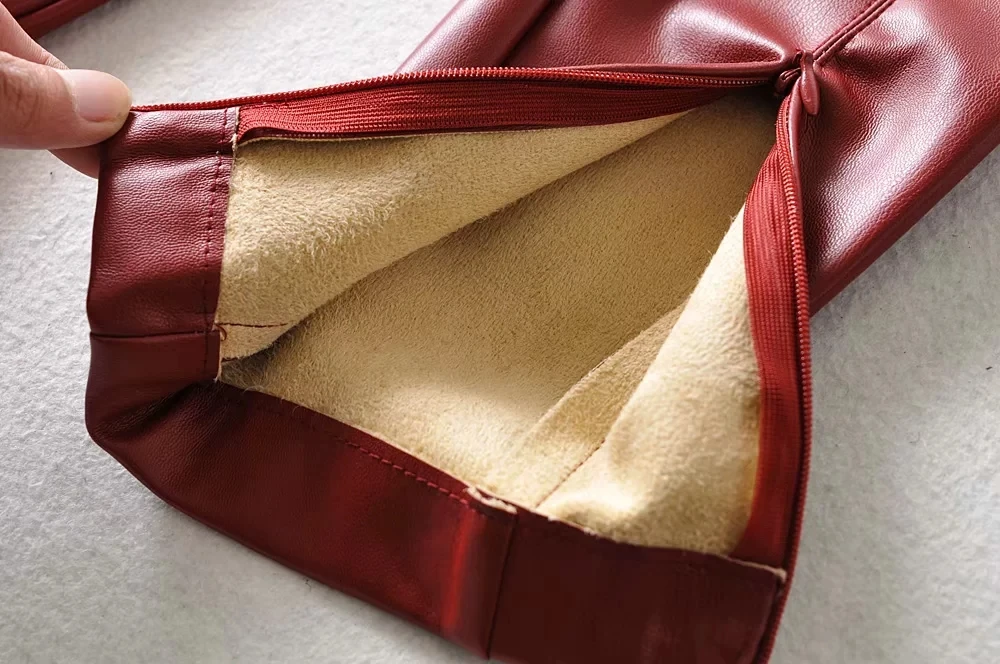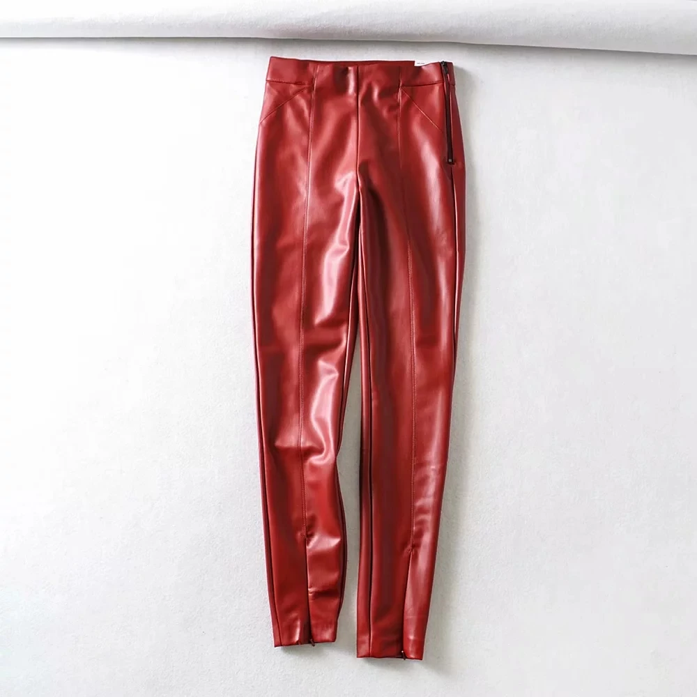 Женские обтягивающие брюки из искусственной кожи, брюки с высокой талией, повседневные узкие брюки карандаш с молнией, зимние теплые штаны zora