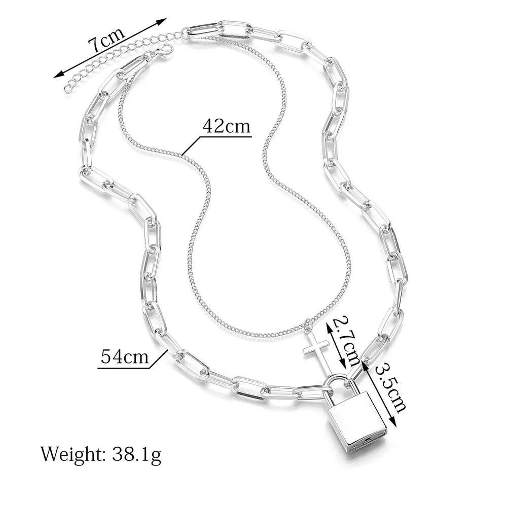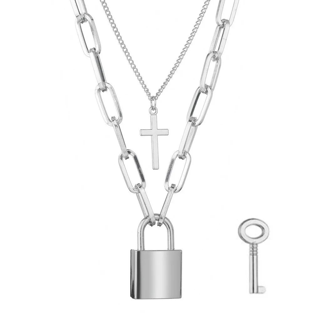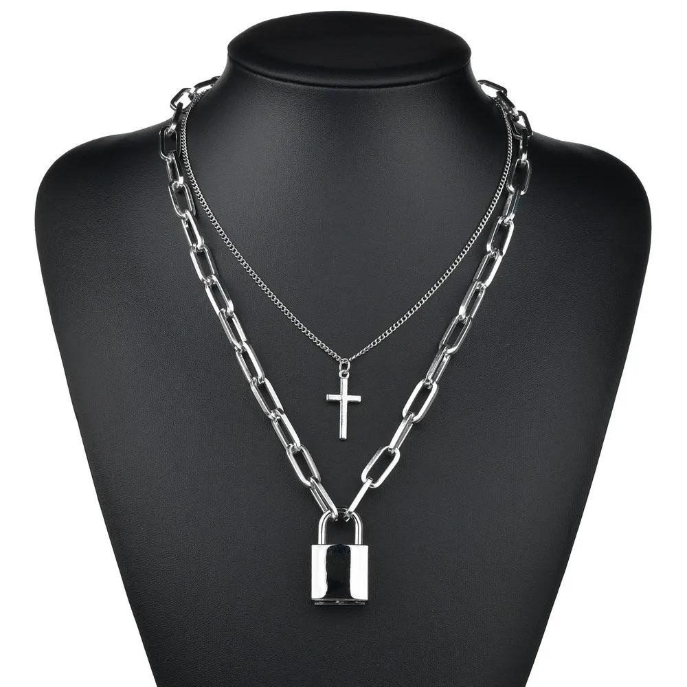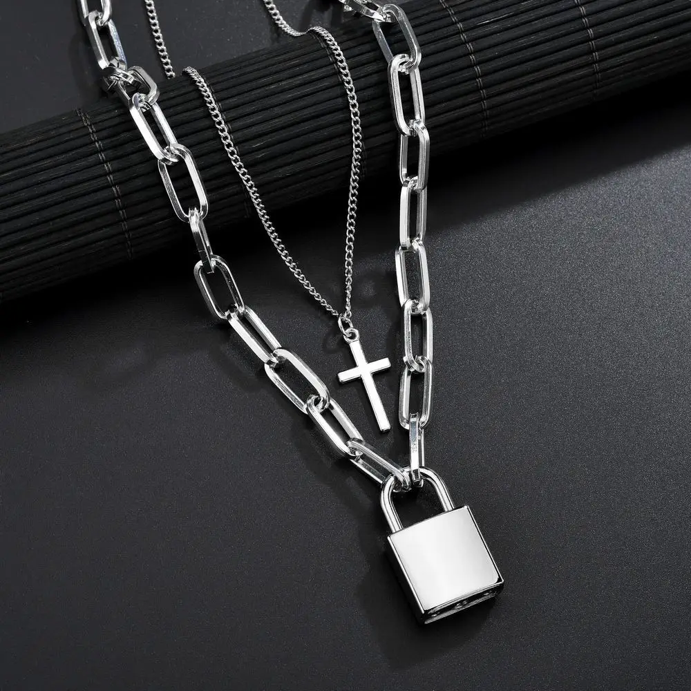 DIEZI, винтажное Двухслойное ожерелье в стиле хип-хоп, Мужская модная цепочка в стиле панк, подвеска с перекрестным замком, женское готическое ювелирное изделие