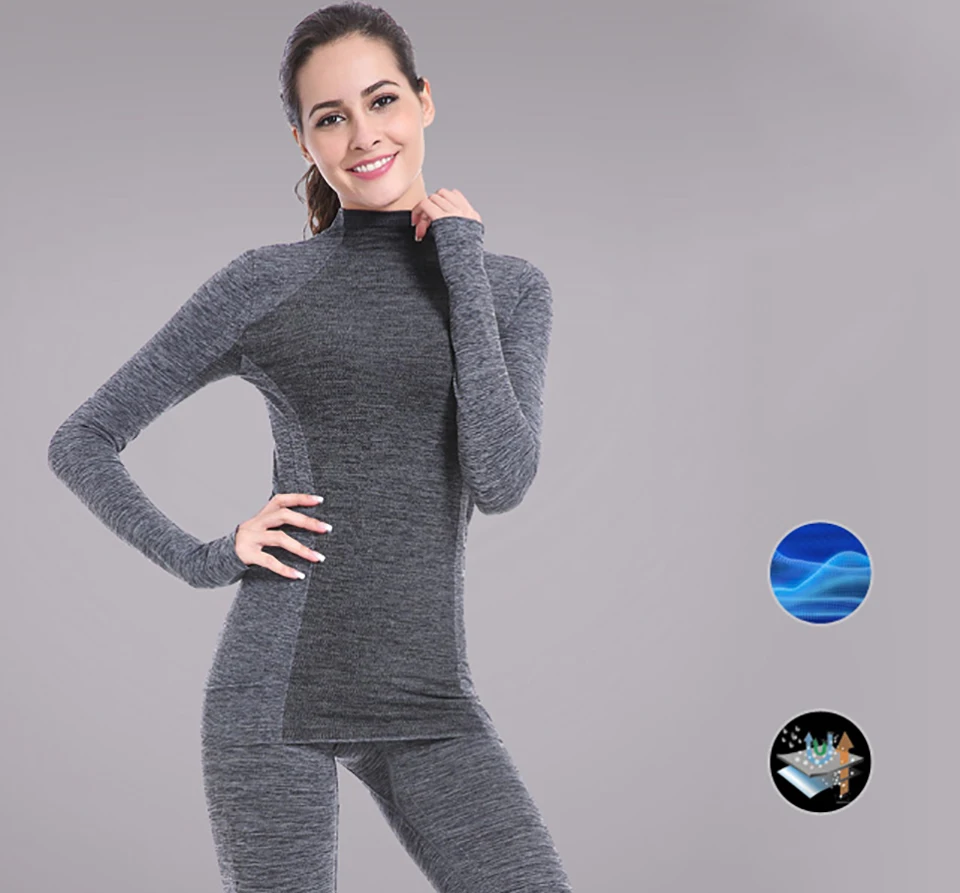 Название: спортивный костюм термобелье женское зимнее быстросохнущее высокоэластичное длинное нижнее белье тепловой пакет женский теплый комплект из двух предметов