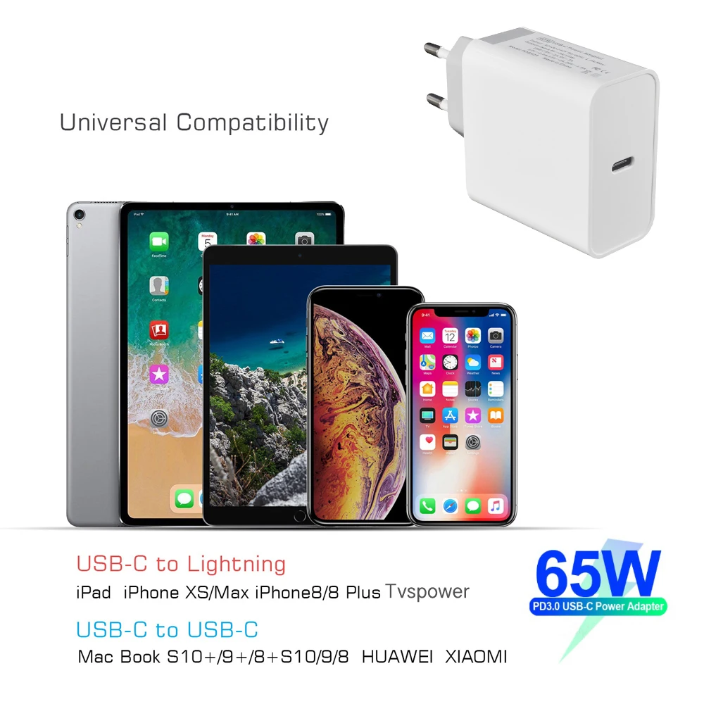 Для компактного зарядного устройства Type-C для USB-C ноутбуков tvspower/MacBook /iPad/iPhone/Samsung Galaxy, Pixel и более PD зарядное устройство для нового MacBook Pro/Air iPhone/iPad Pro