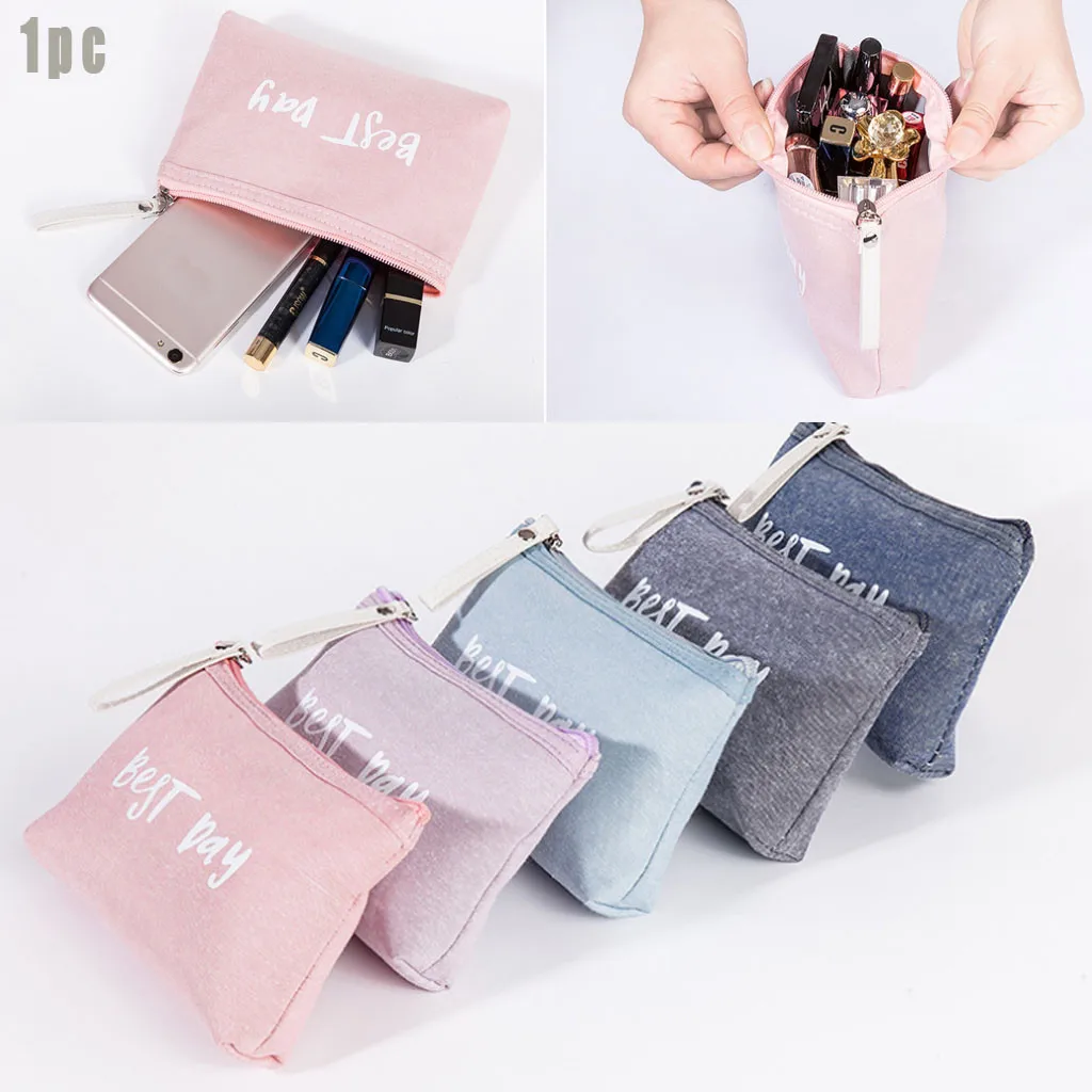 Холщовая Водонепроницаемая косметичка, Женская Портативная Сумка-ручка с буквенным принтом для девочек, сумка для хранения