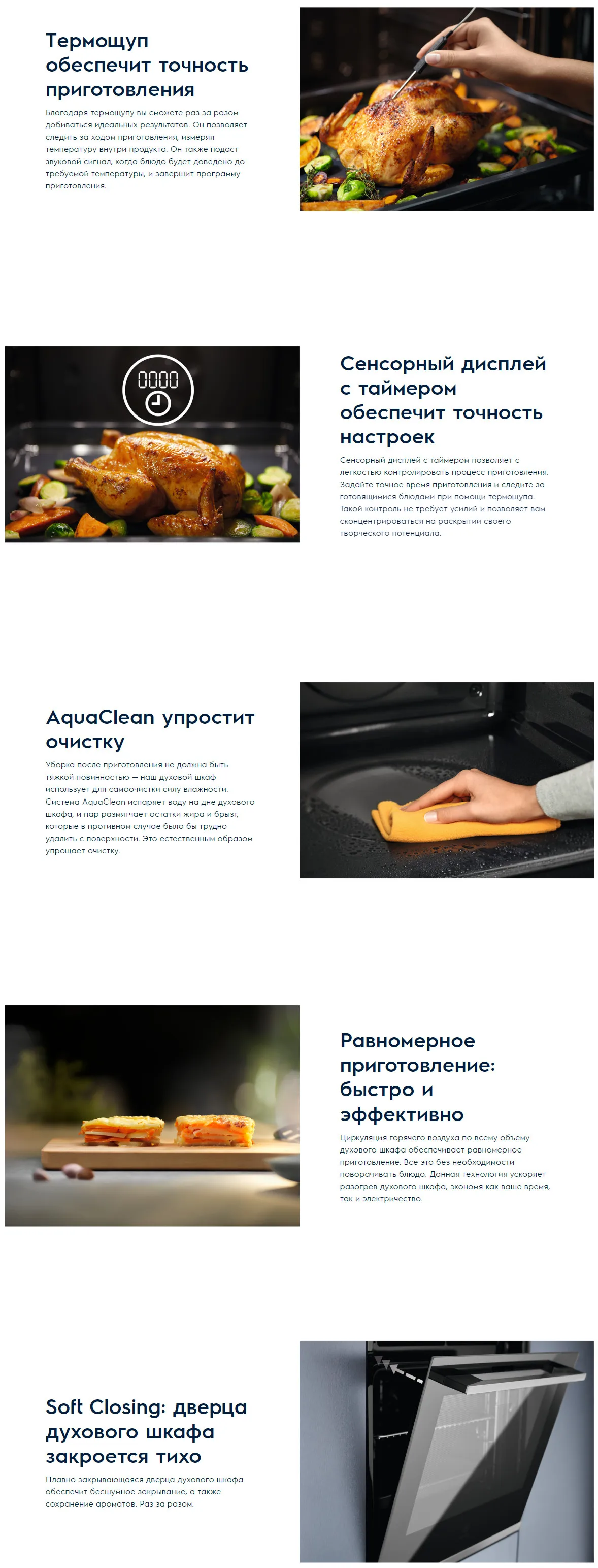 Встраиваемый электрический духовой шкаф Electrolux OEE5H71Z. Доверьтесь нам и добейтесь восхитительных результатов. Духовой шкаф с термощупом позволяет точно контролировать температуру внутри продукта. Он даже умеет выключаться по достижении заданной температуры. Это — кратчайший путь к нежному стейку и восхитительной лазанье. Детали Встраиваемый независимый духовой шкаф Мультифункциональный духовой шкаф с кольцевым нагревательным элементом Термосенсор VelvetClosing® — плавное закрытие дверцы Режимы приготовления: Нижний нагрев, Разморозка, Гриль (15) + нижний нагрев (40) + вентилятор, Большой гриль, Большой турбо-гриль, Освещение, Пицца, Конвекция с кольцевым нагревательным элементом, Верхний нагрев + нижний нагрев Утапливаемые регуляторы Галогеновое освещение Дверца духового шкафа легко чистится: Внутренняя сторона дверцы представляет собой гладкую, легко очищаемую поверхность. Отсоединяемый верхний нагревательный элемент Вентилятор охлаждения: Вентилятор охлаждения начинает работу автоматически, когда духовка включена. Он охлаждает внутреннее пространство духового шкафа, а также элементы нагрева и управления. Производительность Очистка: Очистка водой Установка Цвет: Чёрный Размеры (ВхШхГ), мм: 594x595x567 Размеры для встраивания (ВхШхГ), мм: 590х560х550 Предохранители, А: 16 Другие Защита от детей: Нет Тип пара : Нет Режимы приготовления: Кольцевой + Конвектор Способ подключения: Электрический Освещение духовки: 1 лампа, Галогеновая лампа сверху Подтип : Обычная печь Термощуп: Есть Утапливаемые переключатели: Да Страна производства: Германия Длина сетевого шнура, м: 1.5 Функция пара: Нет Коллекция Rococo: Нет Подключение к Wi-Fi: Нет Количество стекол в двери: 3