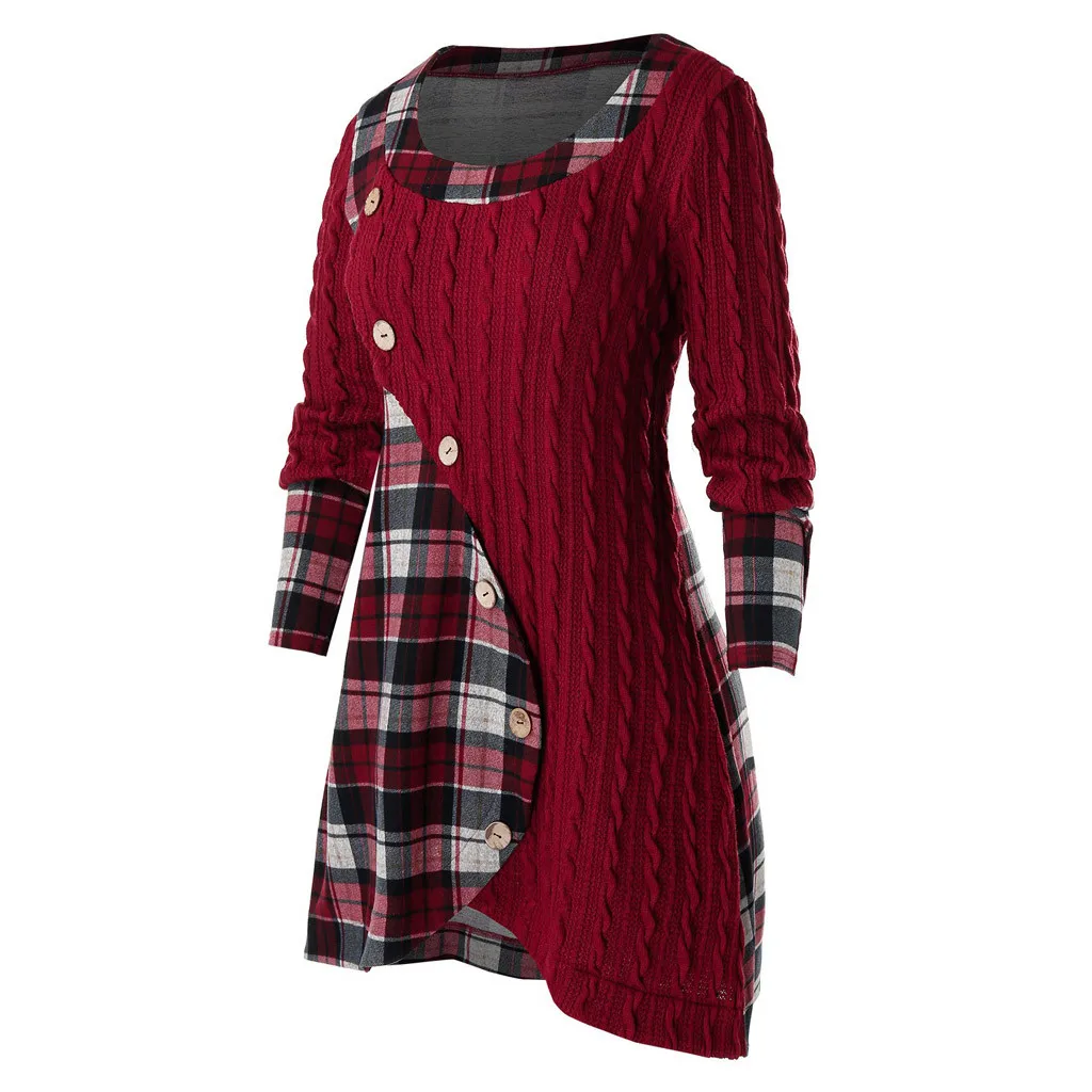 1 Особенности: размера плюс, о-образный вырез, длинный рукав, однотонный, с пуговицами, ажурный, асимметричный, топы, блузки, модный свитер