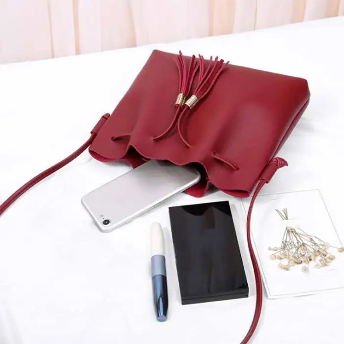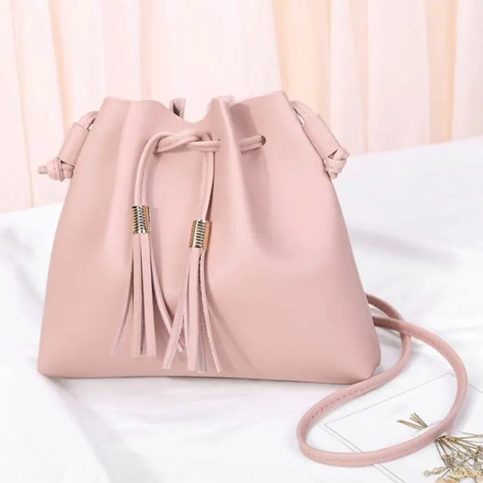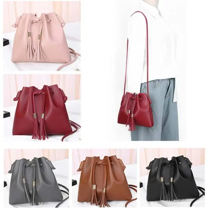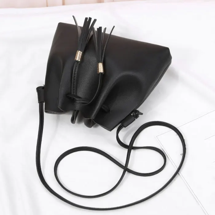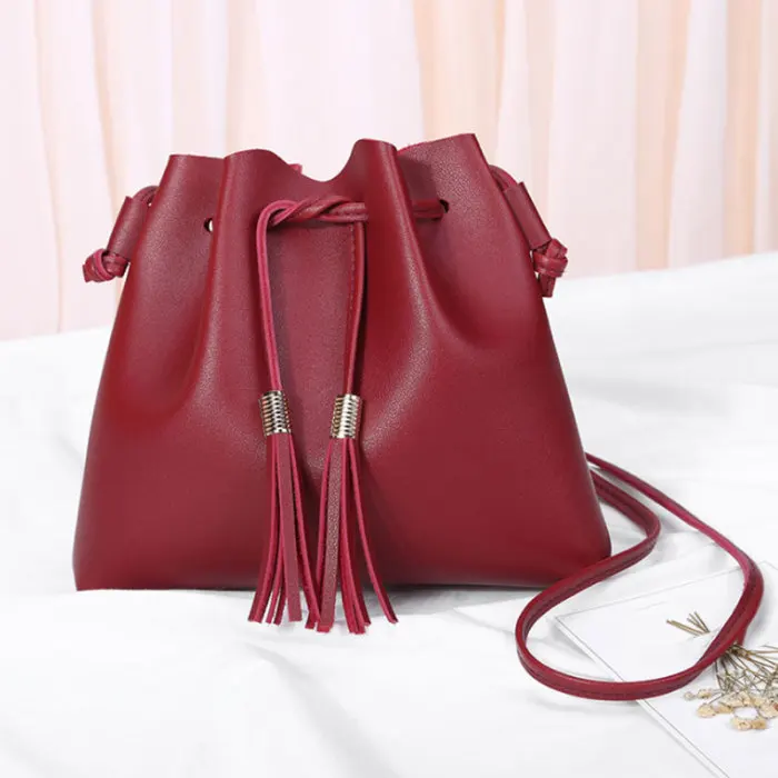 Женская сумка-мессенджер из искусственной кожи, одноцветная сумка-ведро с кисточками, дамские повседневные сумки через плечо, SER88
