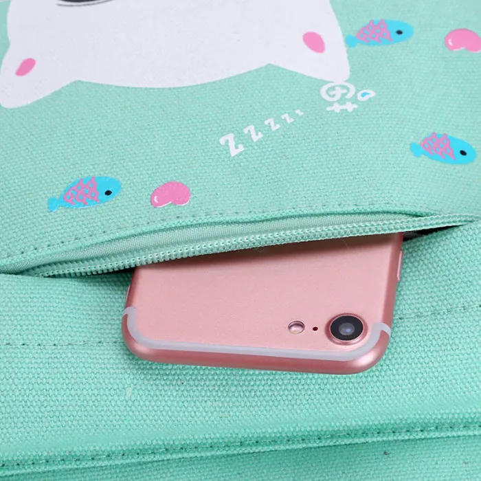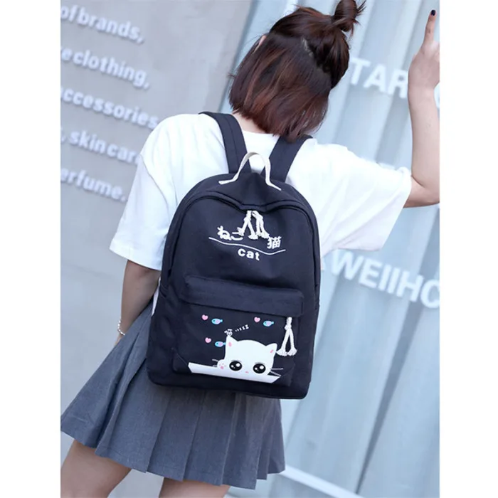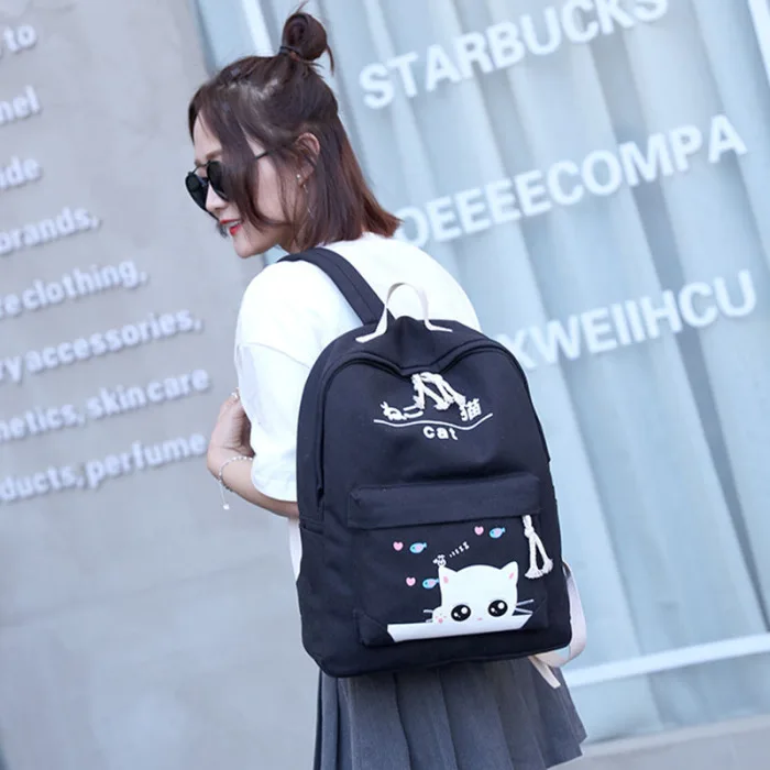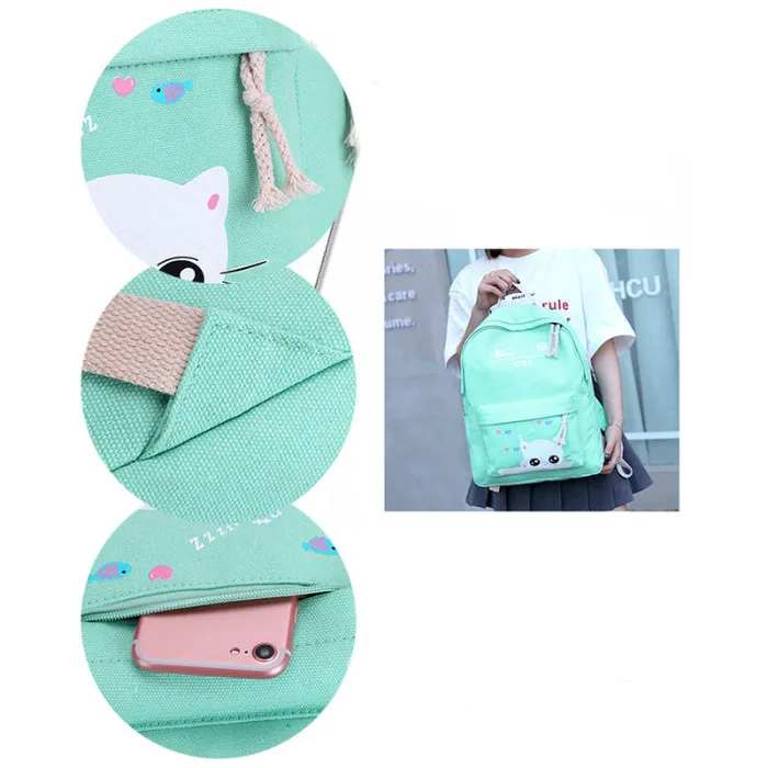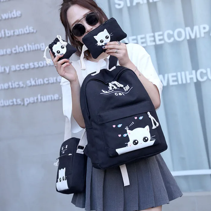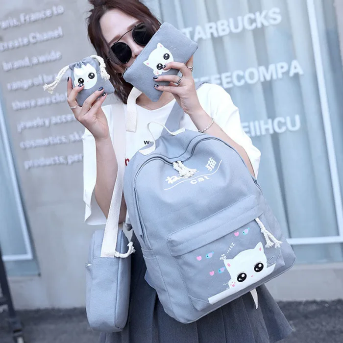 4 шт./компл., Модный корейский женский рюкзак из парусины с милым рисунком кота, Наплечные сумки, пенал, чехол для девушек, школьная сумка, SER88