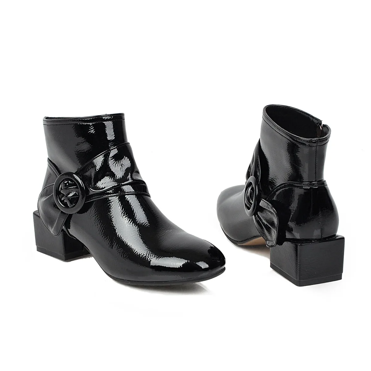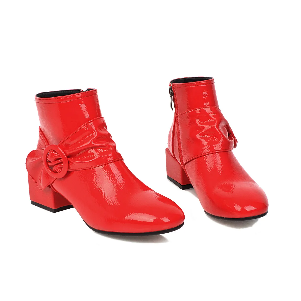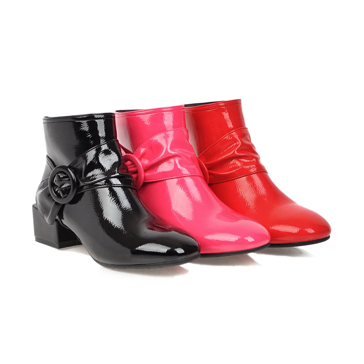Новинка; Ботильоны из лакированной кожи; Цвет черный, красный; Модные пикантные женские зимние полусапожки с квадратным носком на квадратном каблуке Пожалуйста, используйте нашу таблицу размеров при выборе размера. Высота каблука: 4,3 см