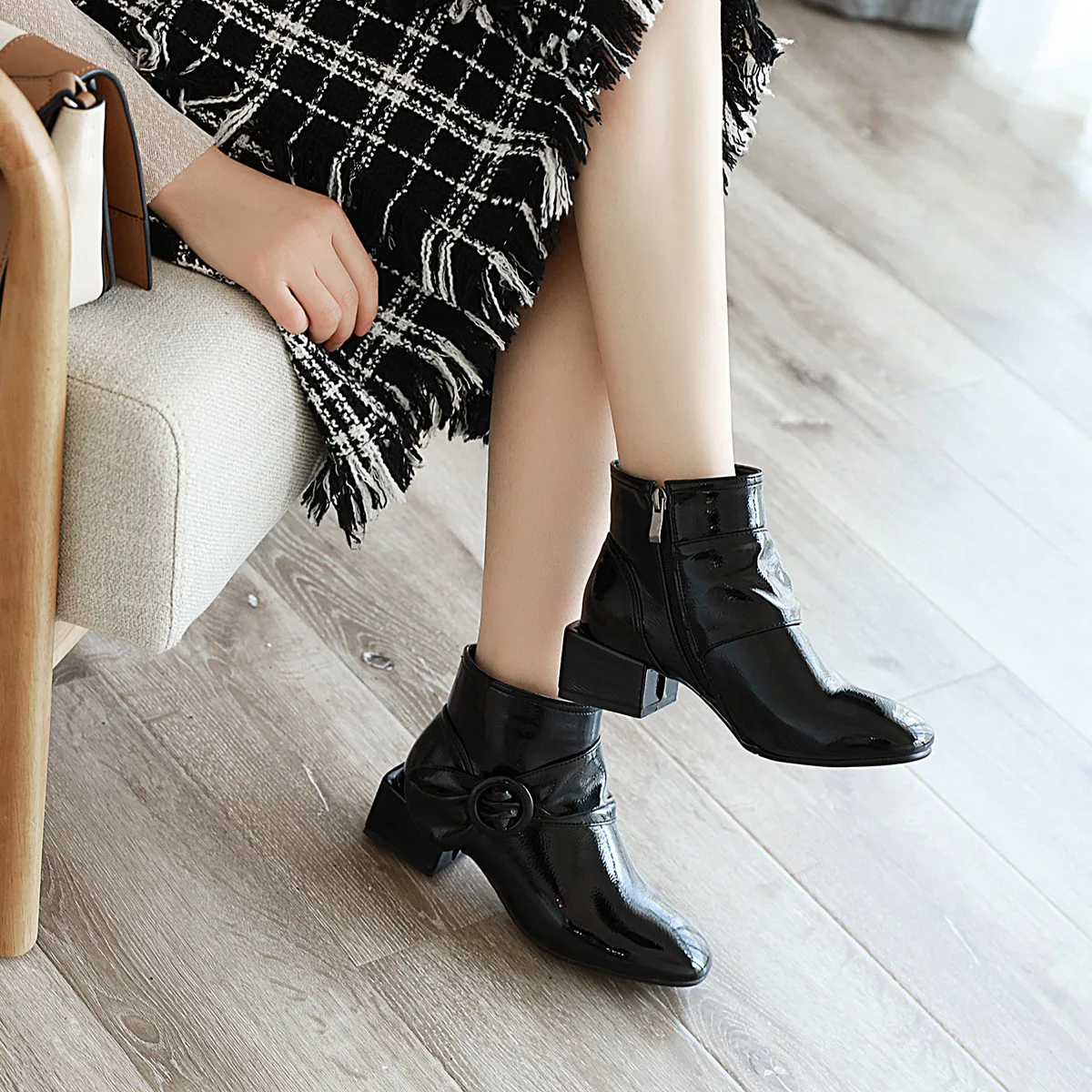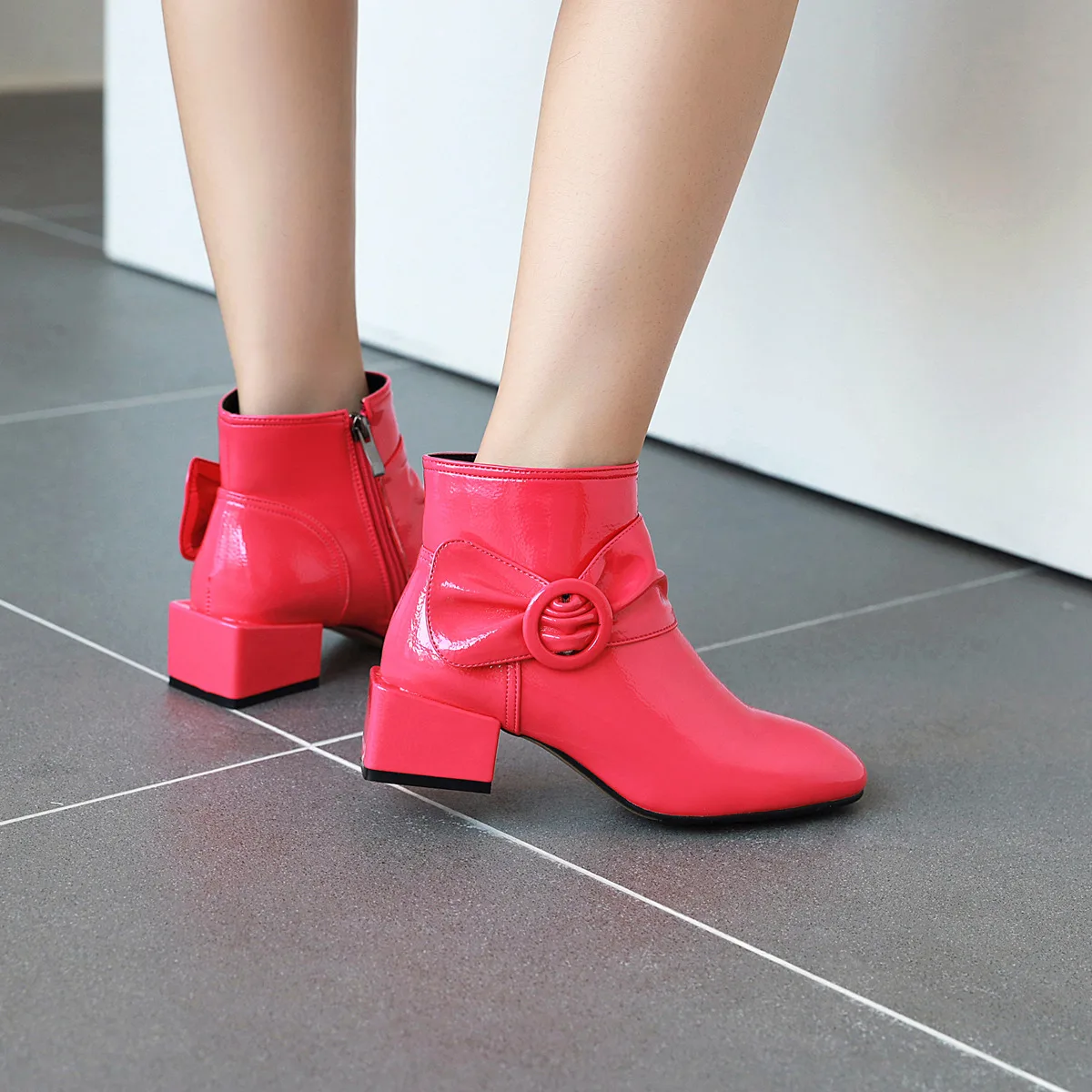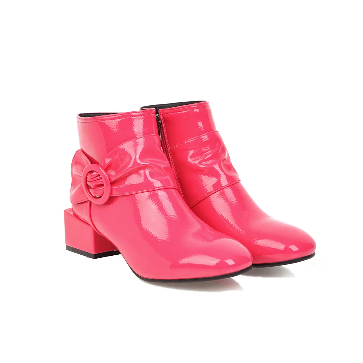 Новинка; Ботильоны из лакированной кожи; Цвет черный, красный; Модные пикантные женские зимние полусапожки с квадратным носком на квадратном каблуке Пожалуйста, используйте нашу таблицу размеров при выборе размера. Высота каблука: 4,3 см