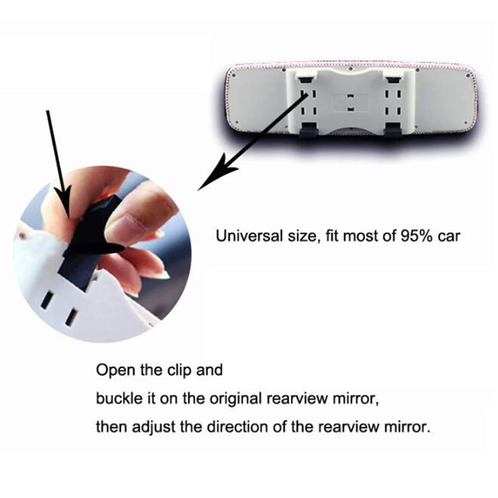 Применение: подходит для большинства автомобильных зеркал заднего вида, это также лучший вариант подарка, чтобы отправить друзей и семьи. Он светится в светильник, показывая высококачественный и яркий интерьер автомобиля. Зеркало заднего вида имеет красивую и элегантную блестящую поверхность, которая показывает ваш уникальный шарм, особенно для использования.