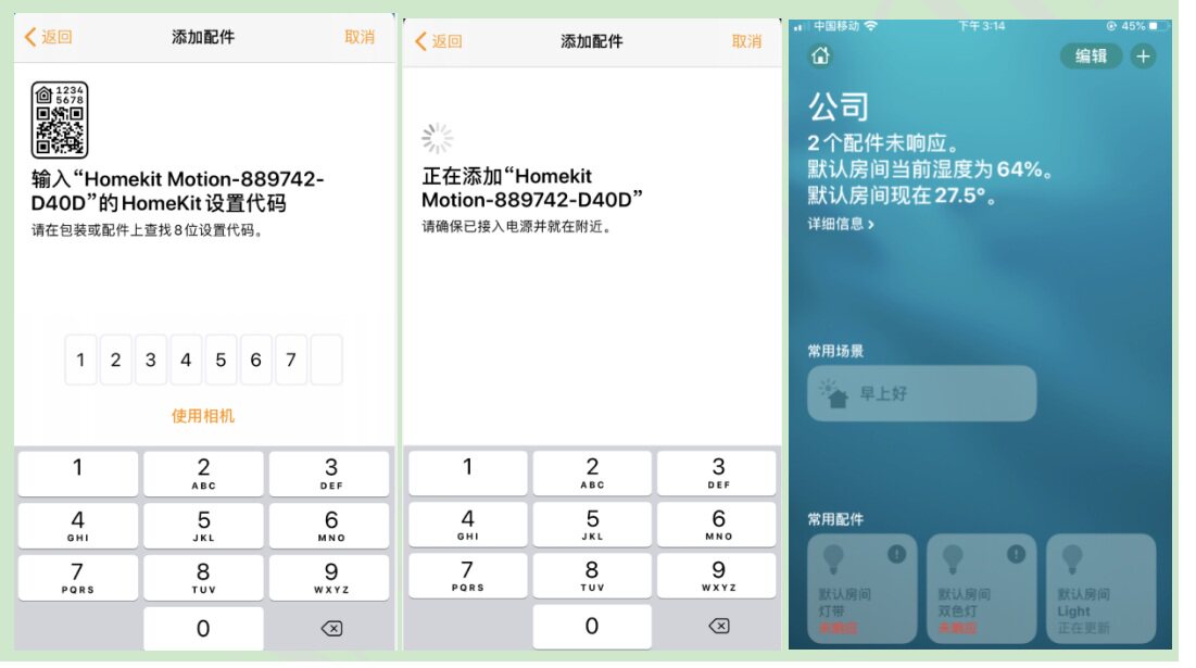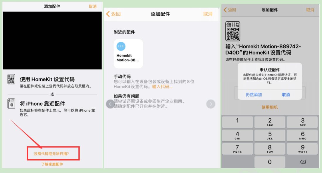 3: откройте приложение Home и нажмите Добавить аксессуары. Нажмите «Нет кода или сканирования» и нажмите на обновленное устройство. Еще добавьте, подождите проверки шифрования (около 30 с), чтобы успешно добавить устройство. Пожалуйста, измените его и наслаждайтесь для будущего удобства.