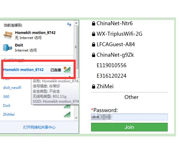 Когда устройство включено, откройте точку доступа Homekit-sensor_xxxx и подключите точку доступа «Homekit-sensor_xxxx» с паролем «12345678», и подождите около 3 секунд. Мобильный телефон автоматически переходит к интерфейсу распределительной сети. Примечание: Если существует несколько устройств, пожалуйста, обратите внимание на различное название точки доступа.