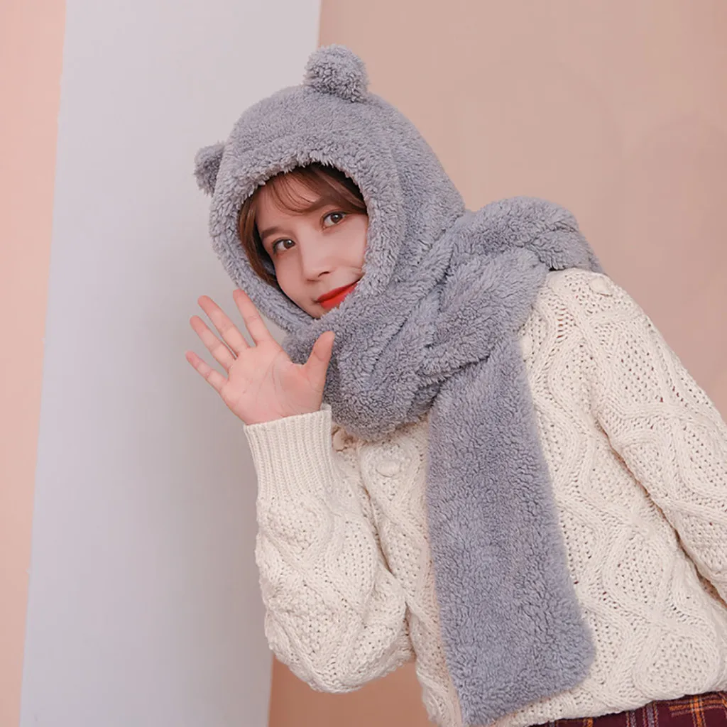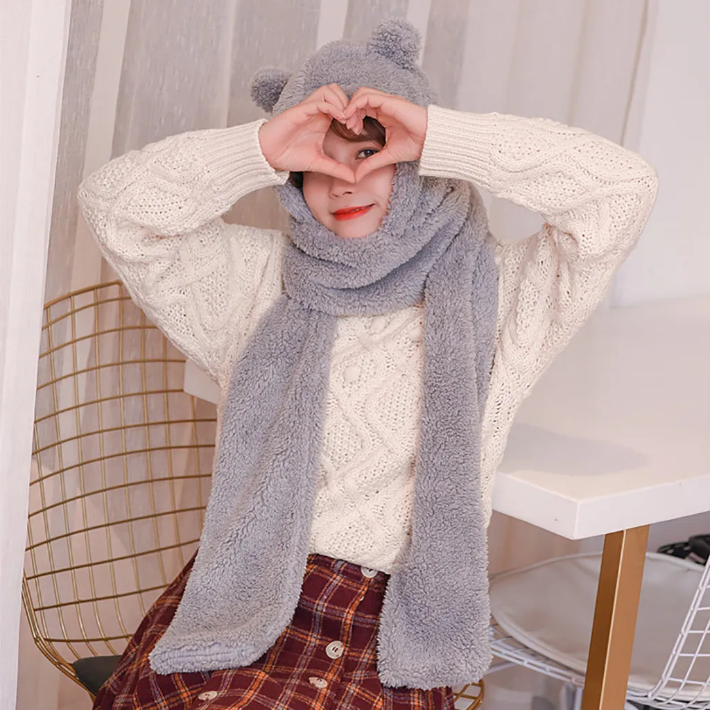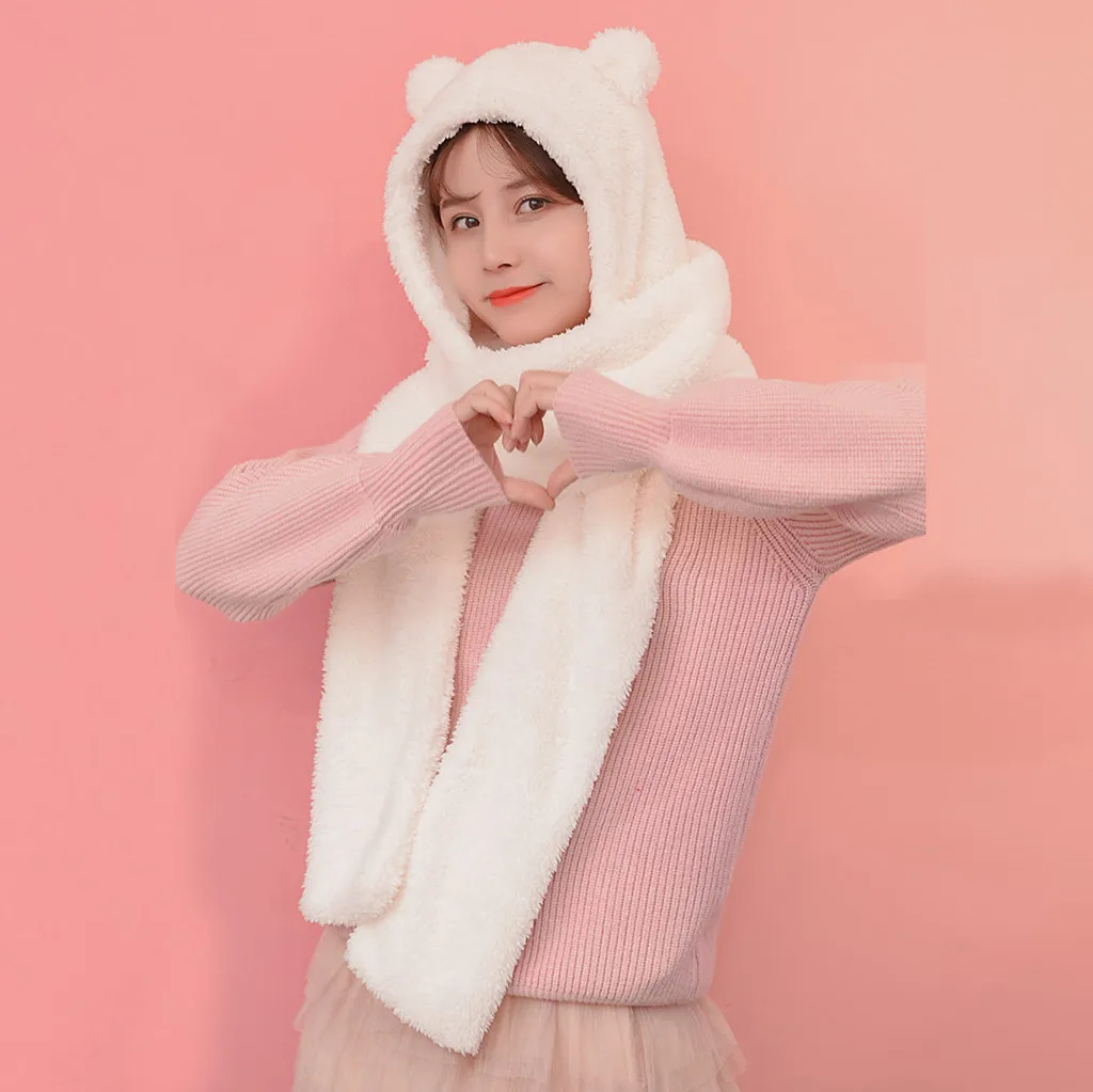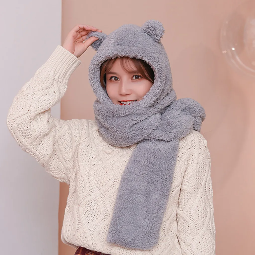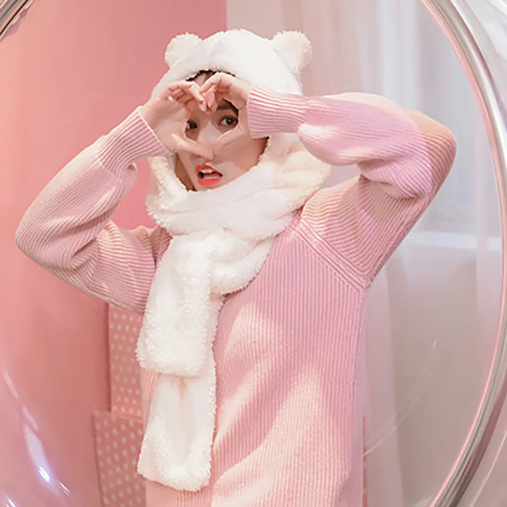 Женская милая Толстая шапка с мультяшным рисунком, защита для ушей, теплая плюшевая шапка, шарф, перчатки, набор