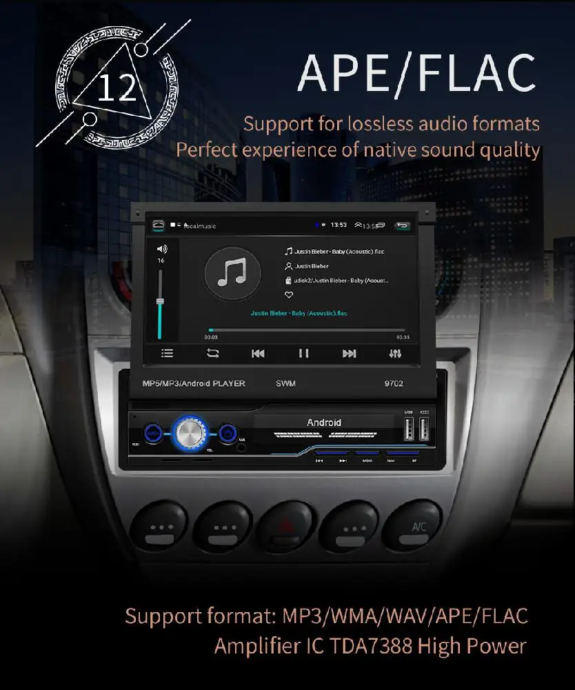 Поддерживаемые Аудиоформаты: MP3 / wma / WAV / APE / FLAC