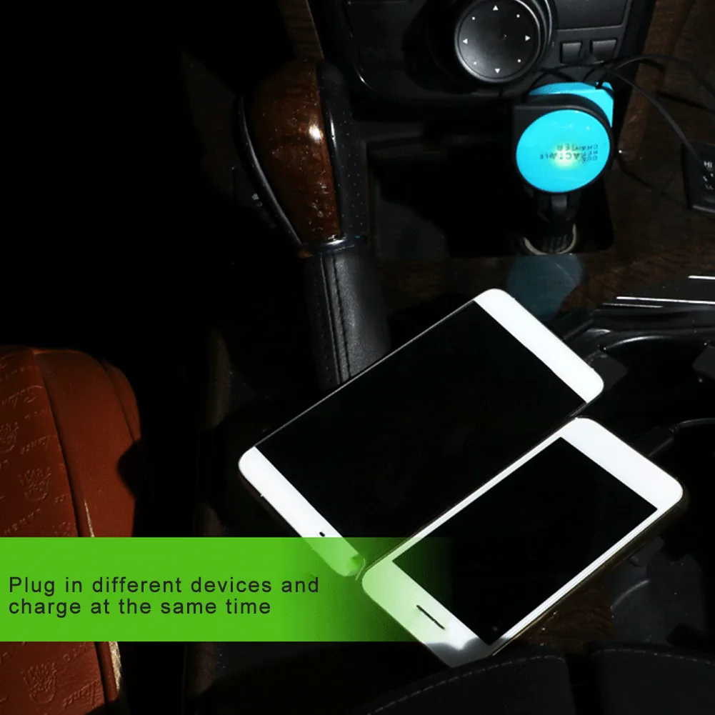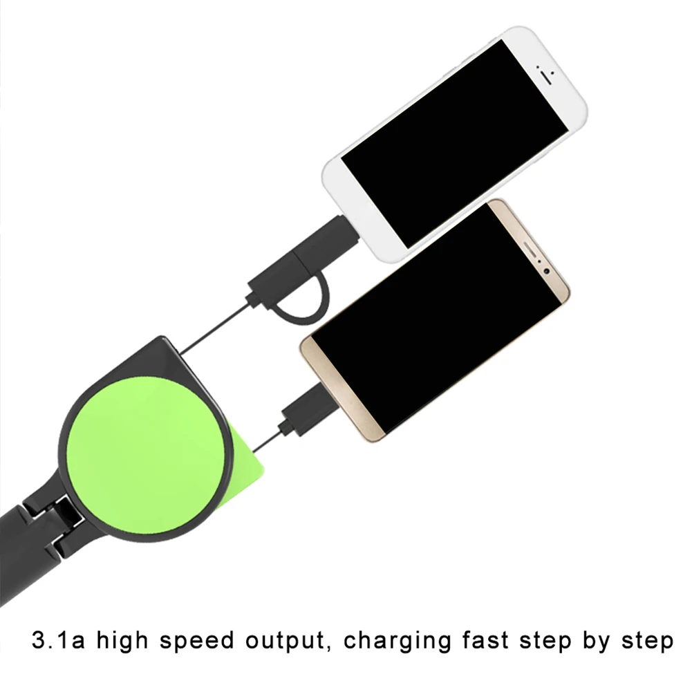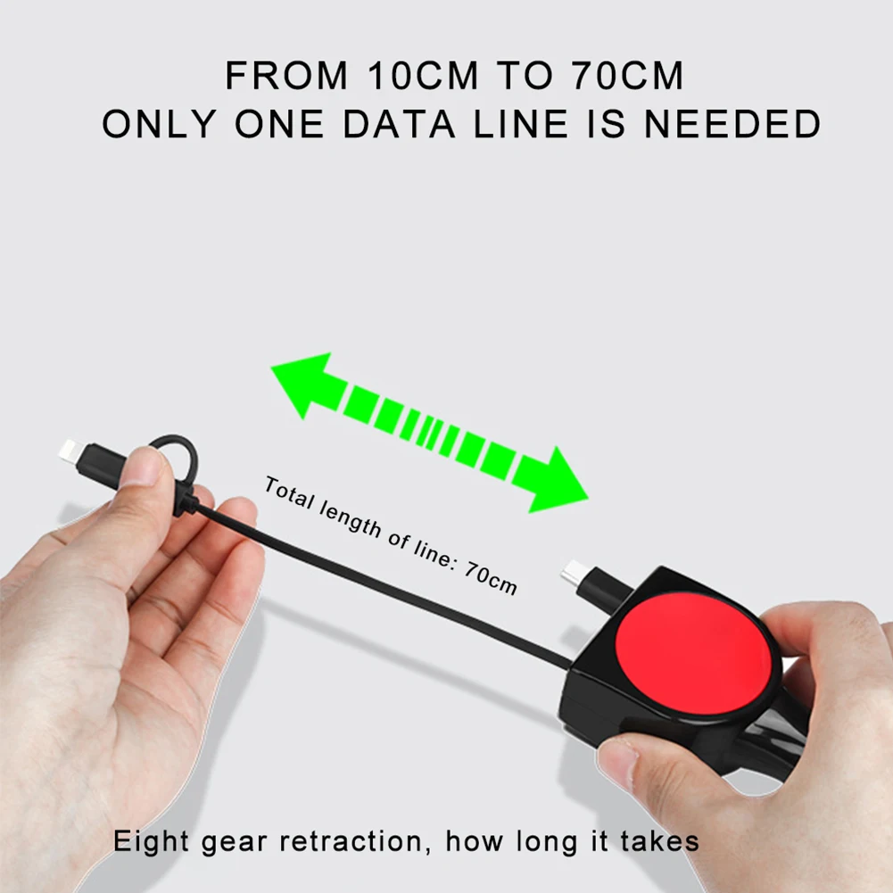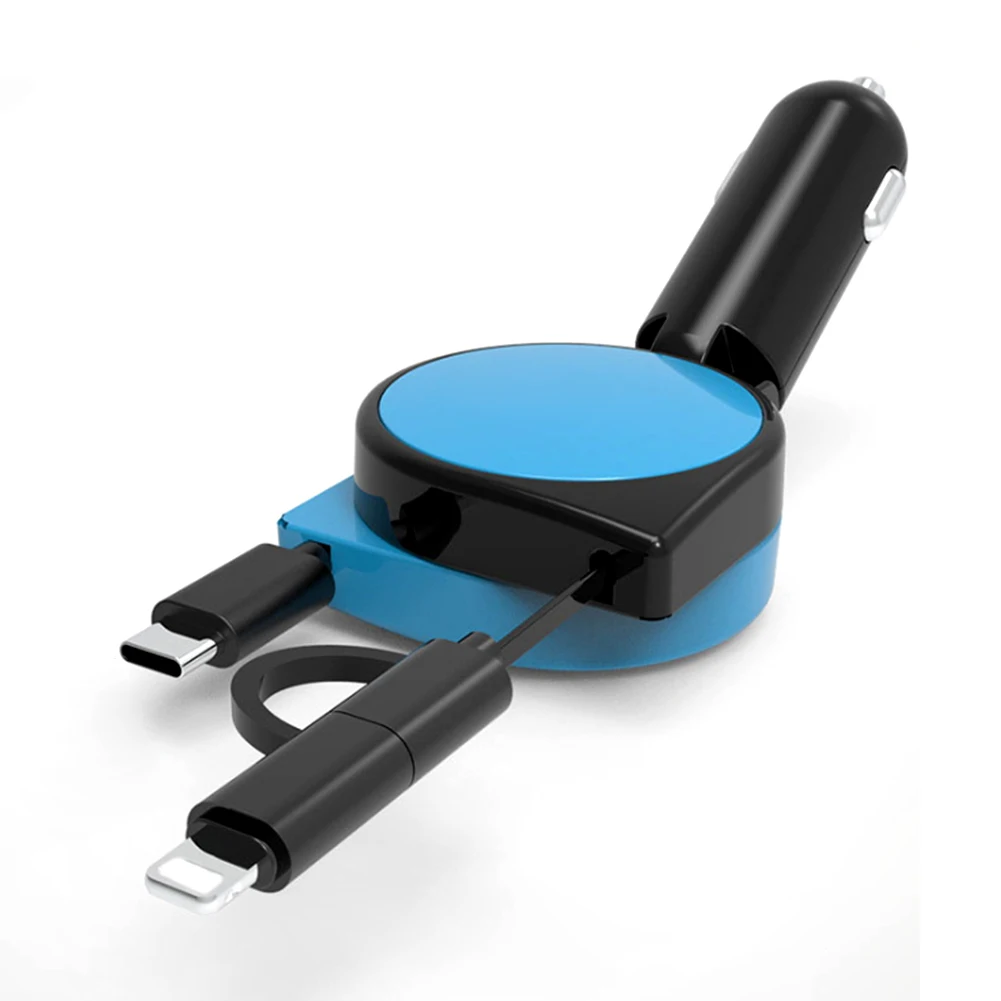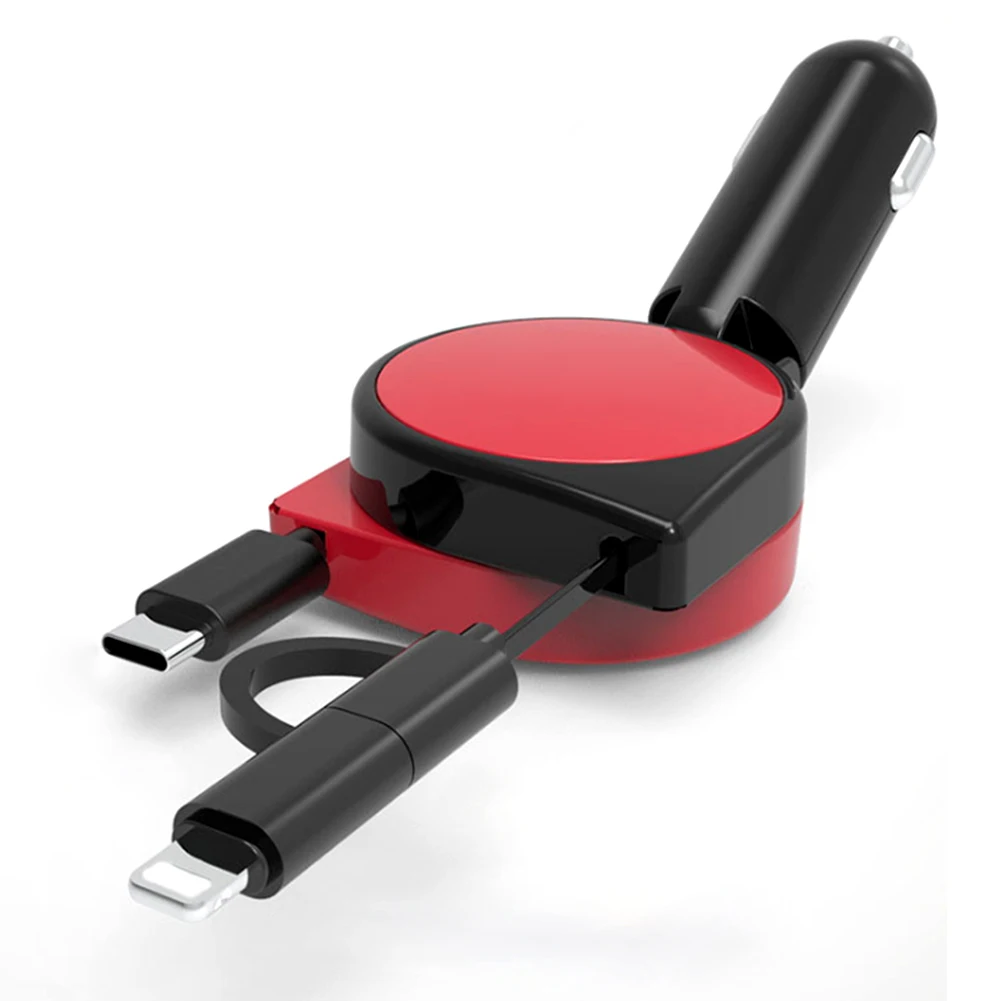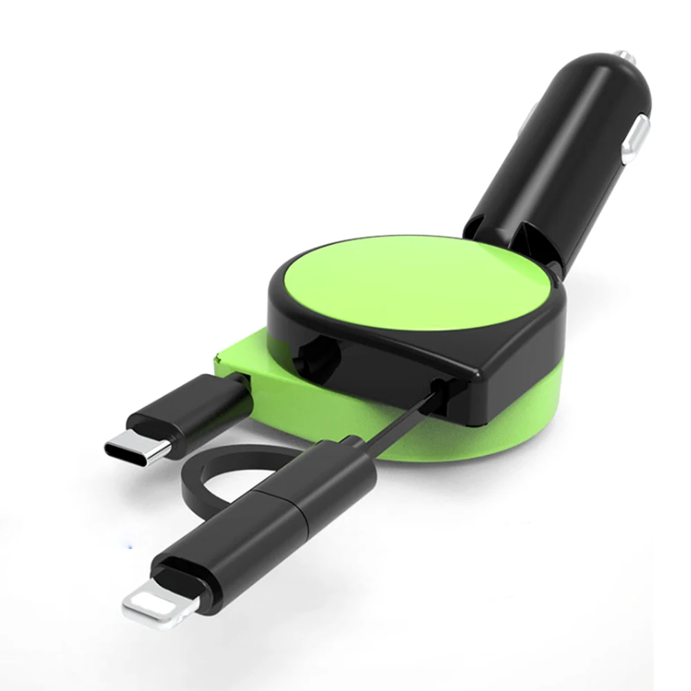 Название продукта: автомобильное зарядное устройство, быстрая зарядка 3.1A с двойным выдвижным кабелем, многофункциональный адаптер 3 в 1, совместимый с Android, Type-C, iPhone