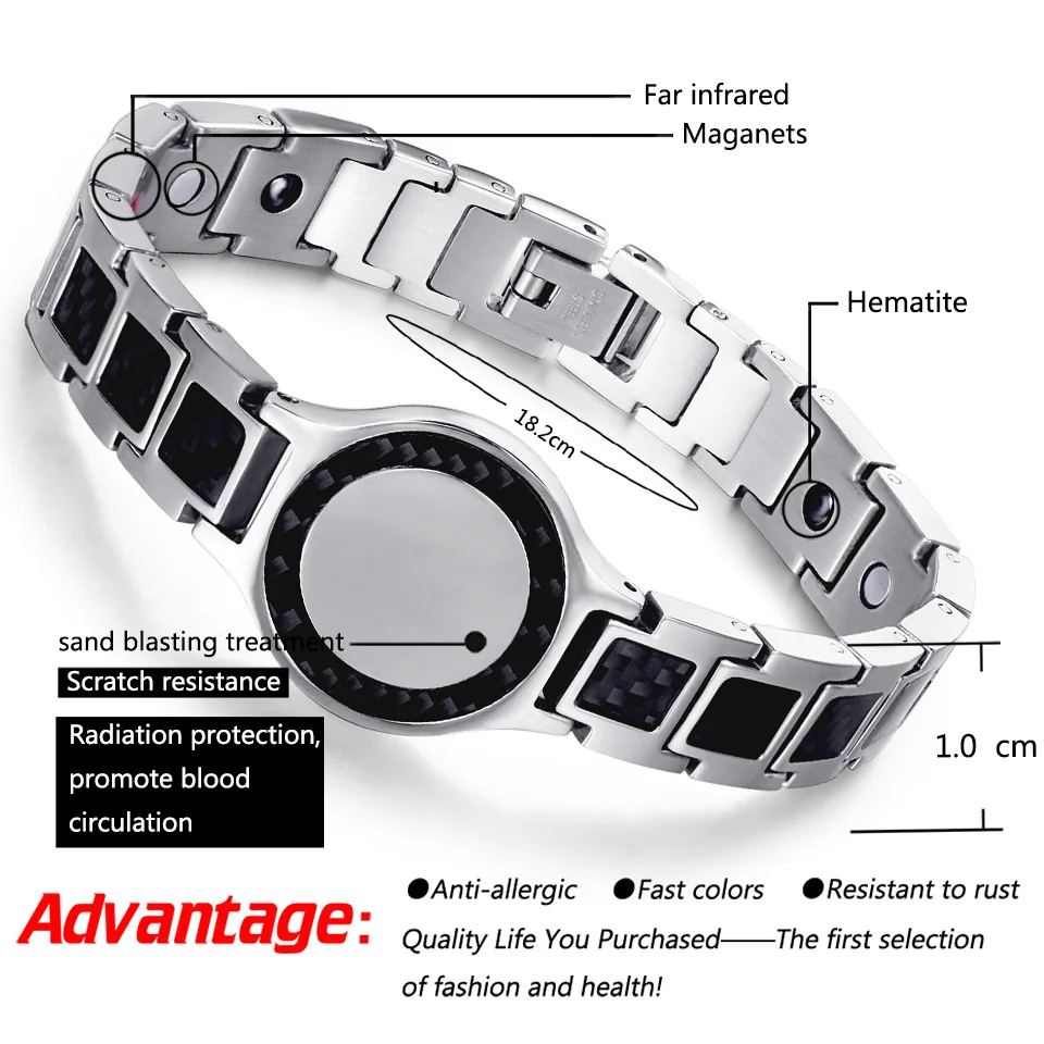 Мужские браслеты с магнитной подвеской RainSo, браслеты из нержавеющей стали, серебристые, черные, на заказ, ювелирные изделия для терапии