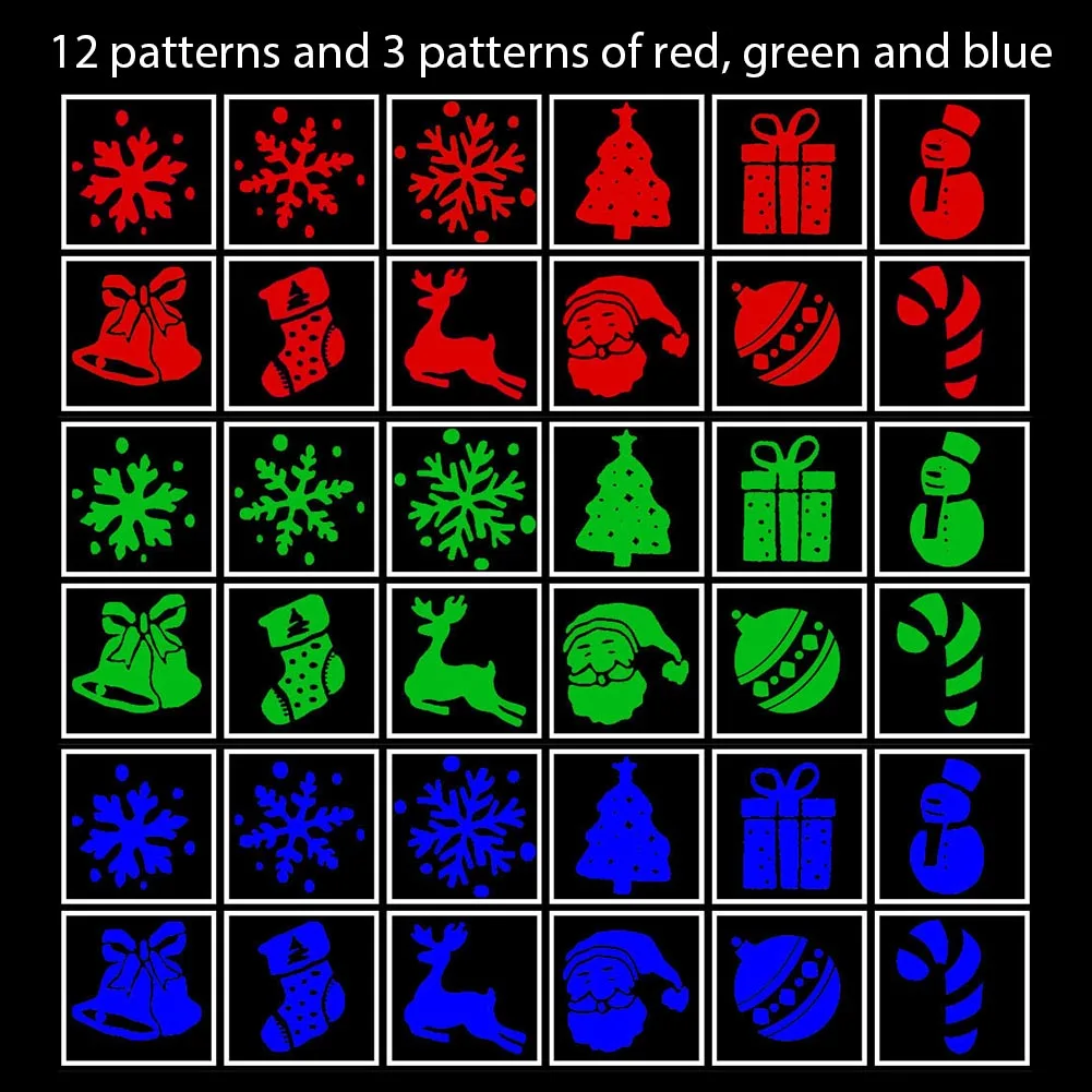 -12 видов проекции узоров: Рождественские узоры автоматически поворачиваются и проецируются на стену. Они подходят для любого случая в любое время года.