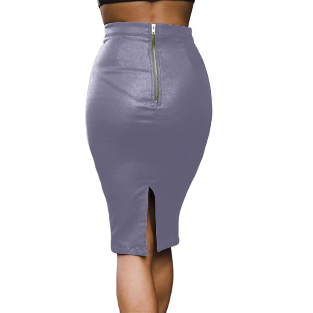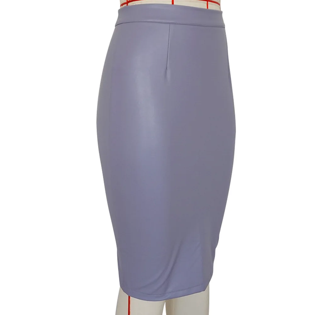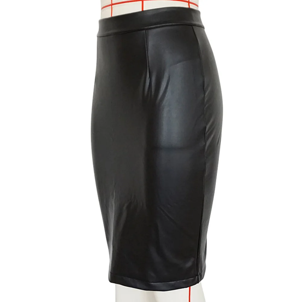 Женская однотонная Облегающая Юбка До Колена из искусственной кожи с высокой талией и разрезом сзади